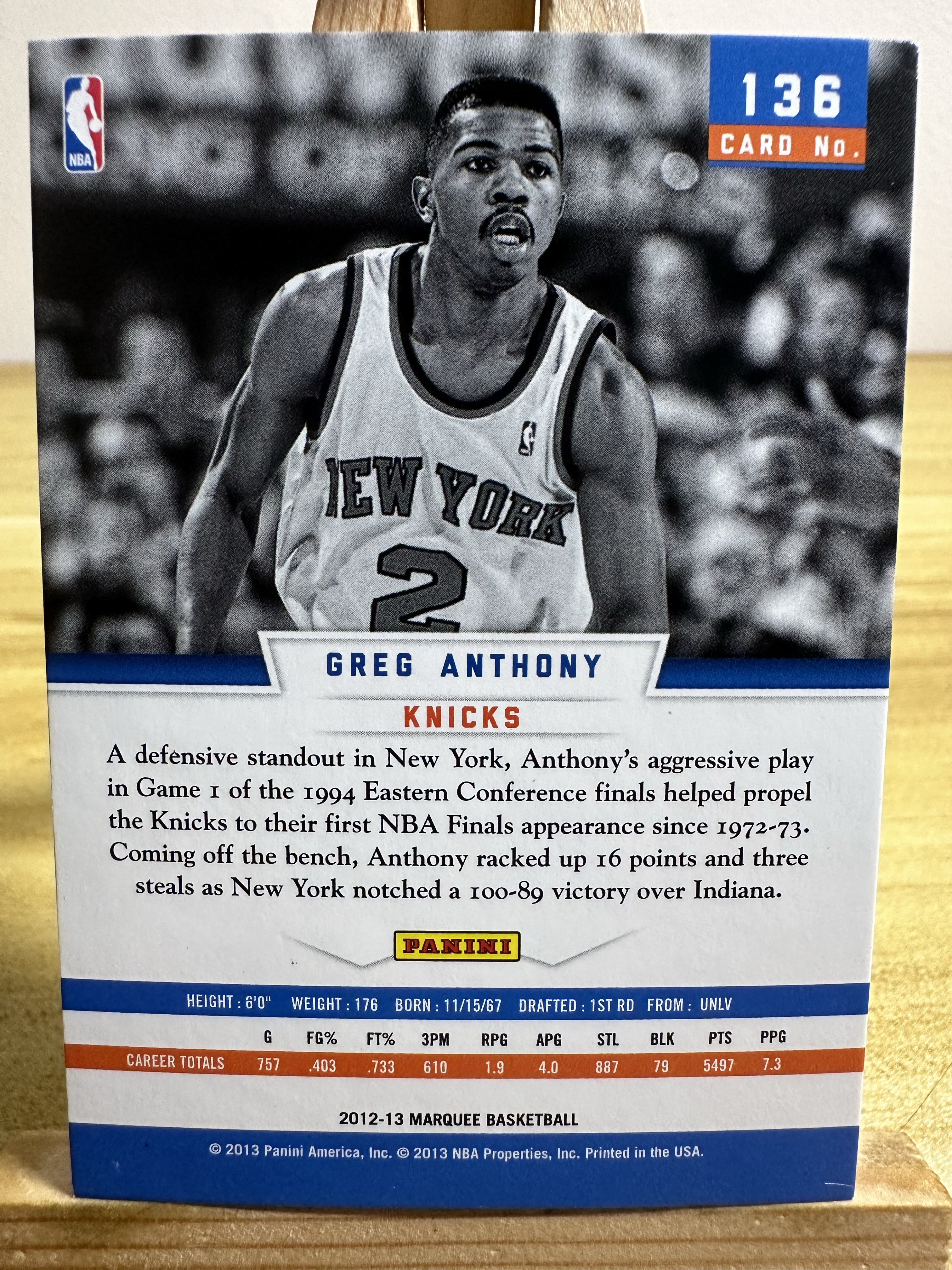 2012-13 Panini Marquee Greg Anthony 尼克斯 格雷格 安东尼 马奎 base e77