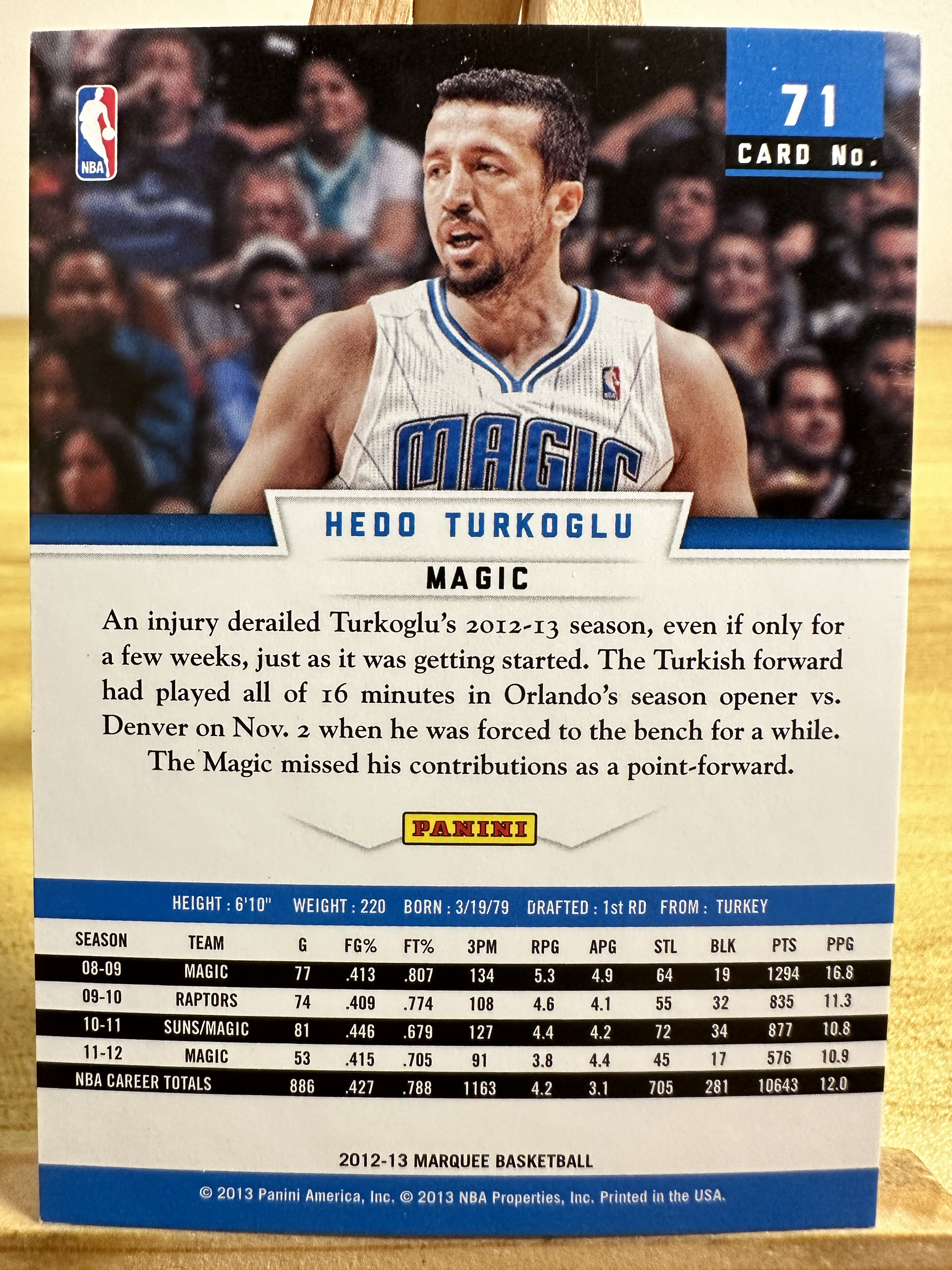 2012-13 Panini Marquee Hedo Turkoglu 魔术 希度 特克格鲁 特科格鲁 马奎 base e53