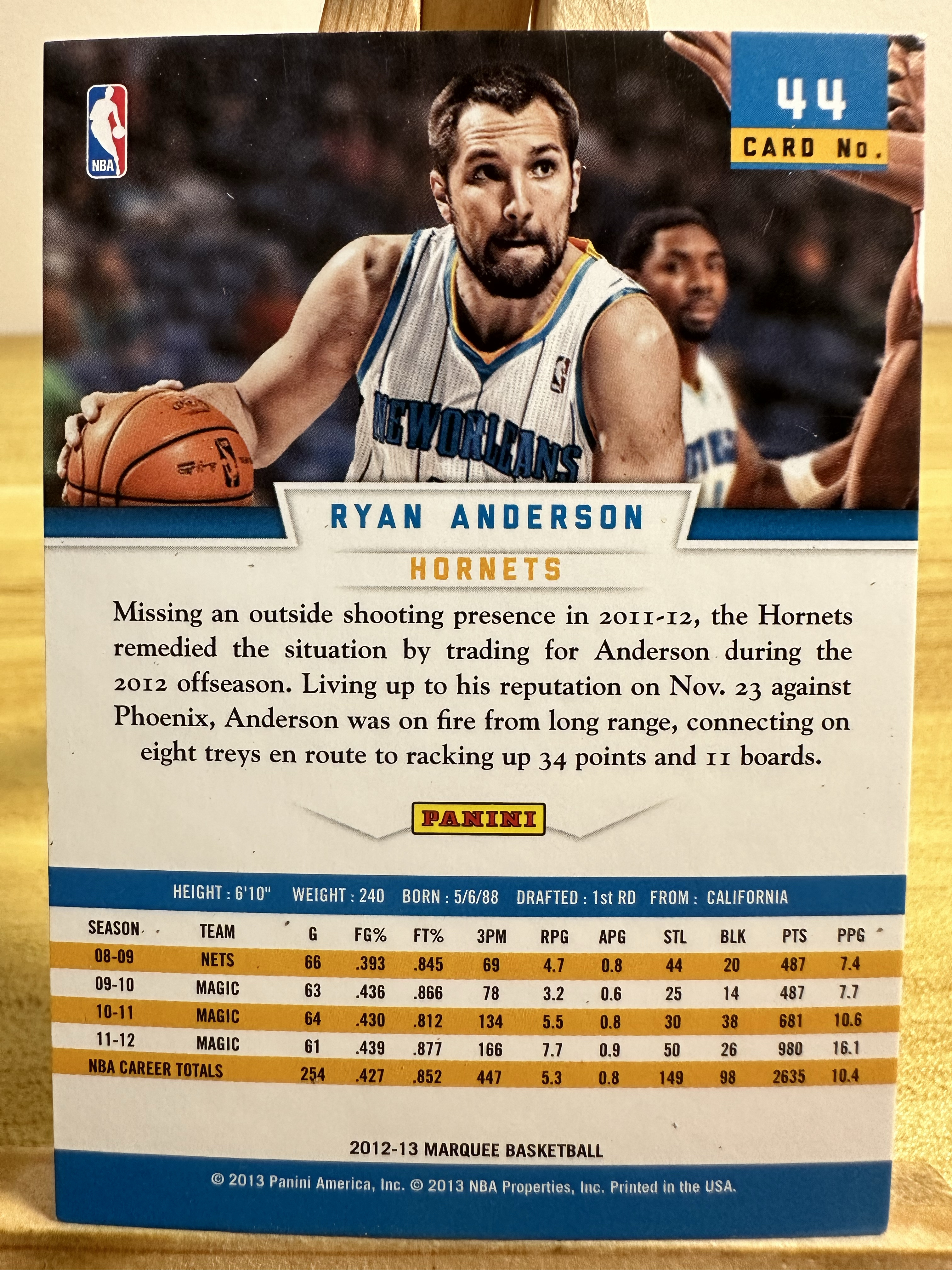 2012-13 Panini Marquee Ryan Anderson 黄蜂 莱恩 安德森 马奎 base e45