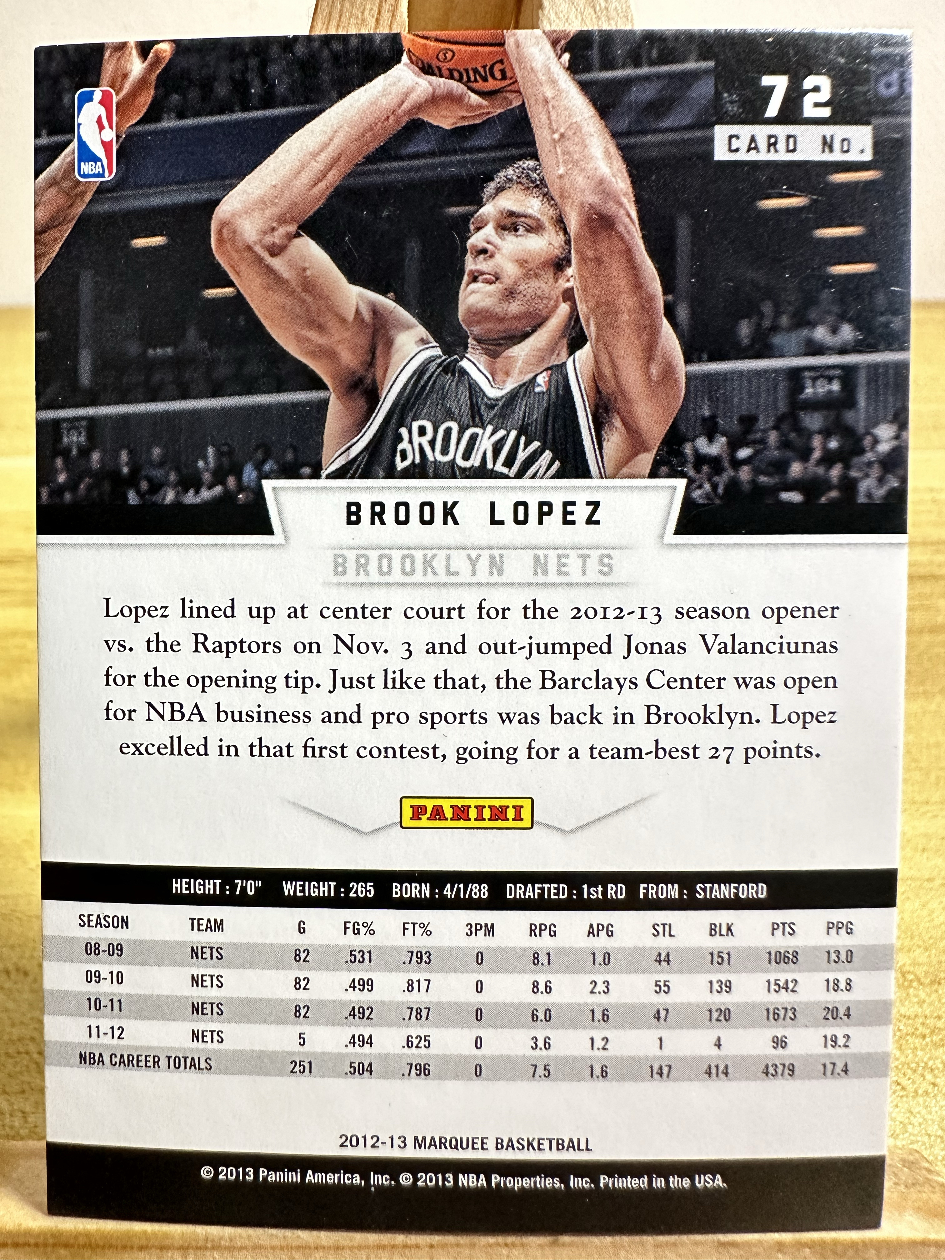 2012-13 Panini Marquee Brook Lopez 篮网 布鲁克 洛佩斯 洛佩兹 马奎 base 大洛 e11
