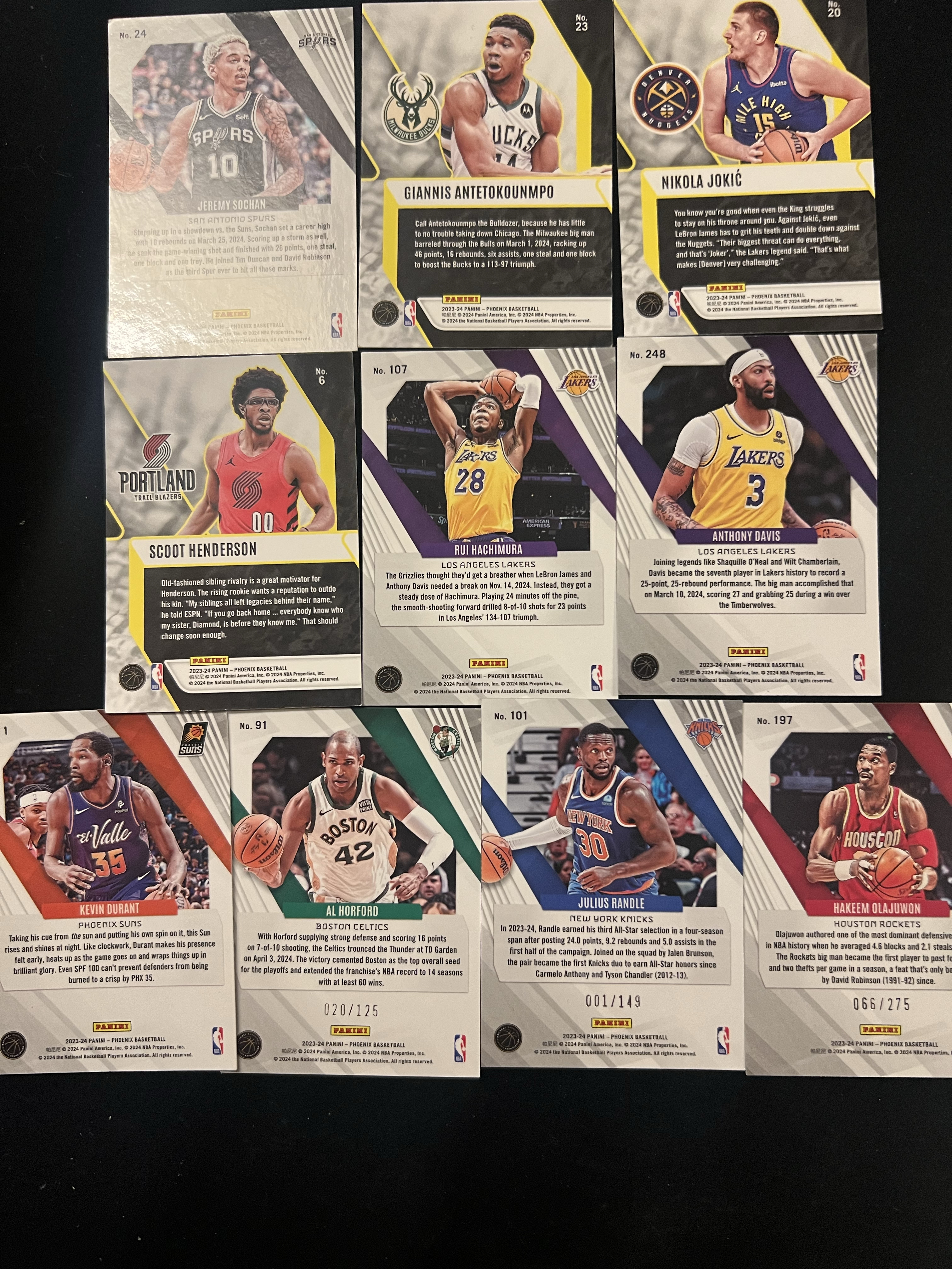 2023-24 Panini PHOENIX Kevin Durant RC 霍福德 兰德尔 奥拉朱旺 索汉 字母哥 约基奇 125编 149编 275编 新秀 凤凰 折射 base Lot打包