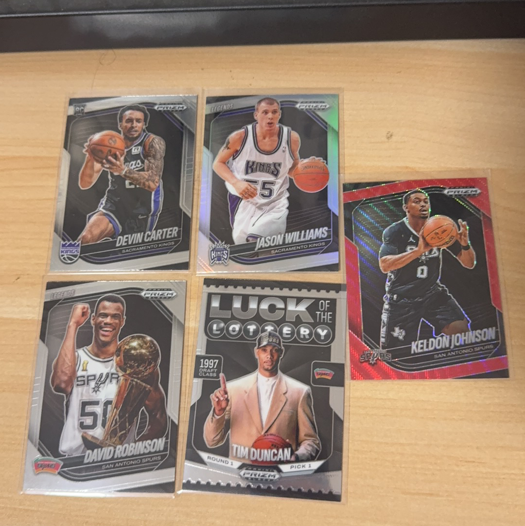 2024-25 Panini Prizm Devin Carter RC 【接代卖 回款超快】国王 新秀 德文卡特 邓肯 乐透 大卫罗宾逊 五张lot 打包 卡品如图