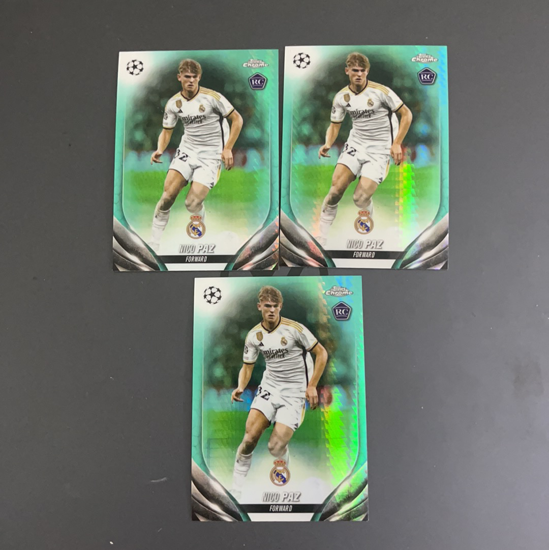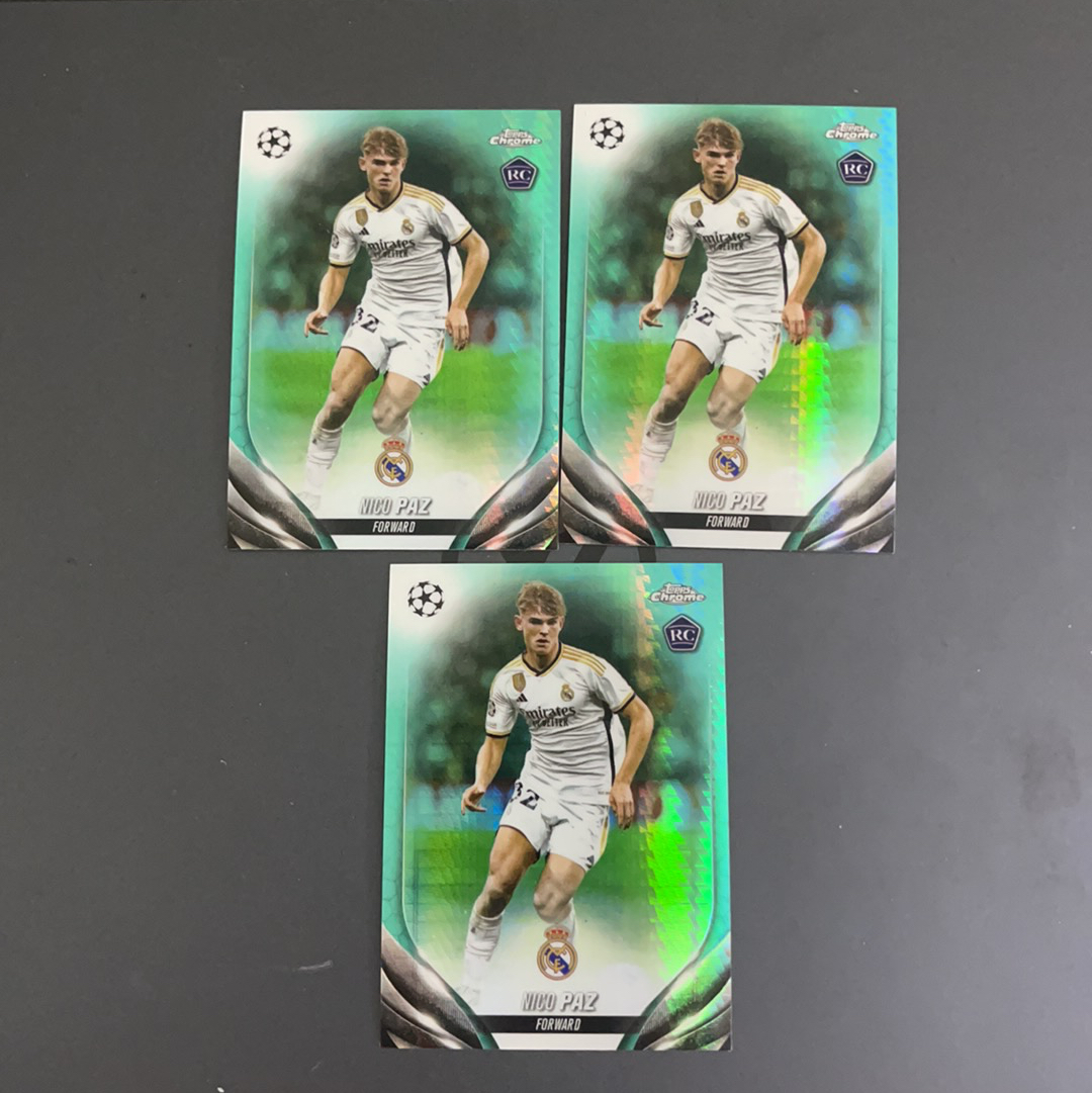 2024 Topps Chrome Nico Paz RC 尼科 帕斯 正TC 新秀 绿脉冲折 折射 皇马 皇家马德里 卡品如图 共三张