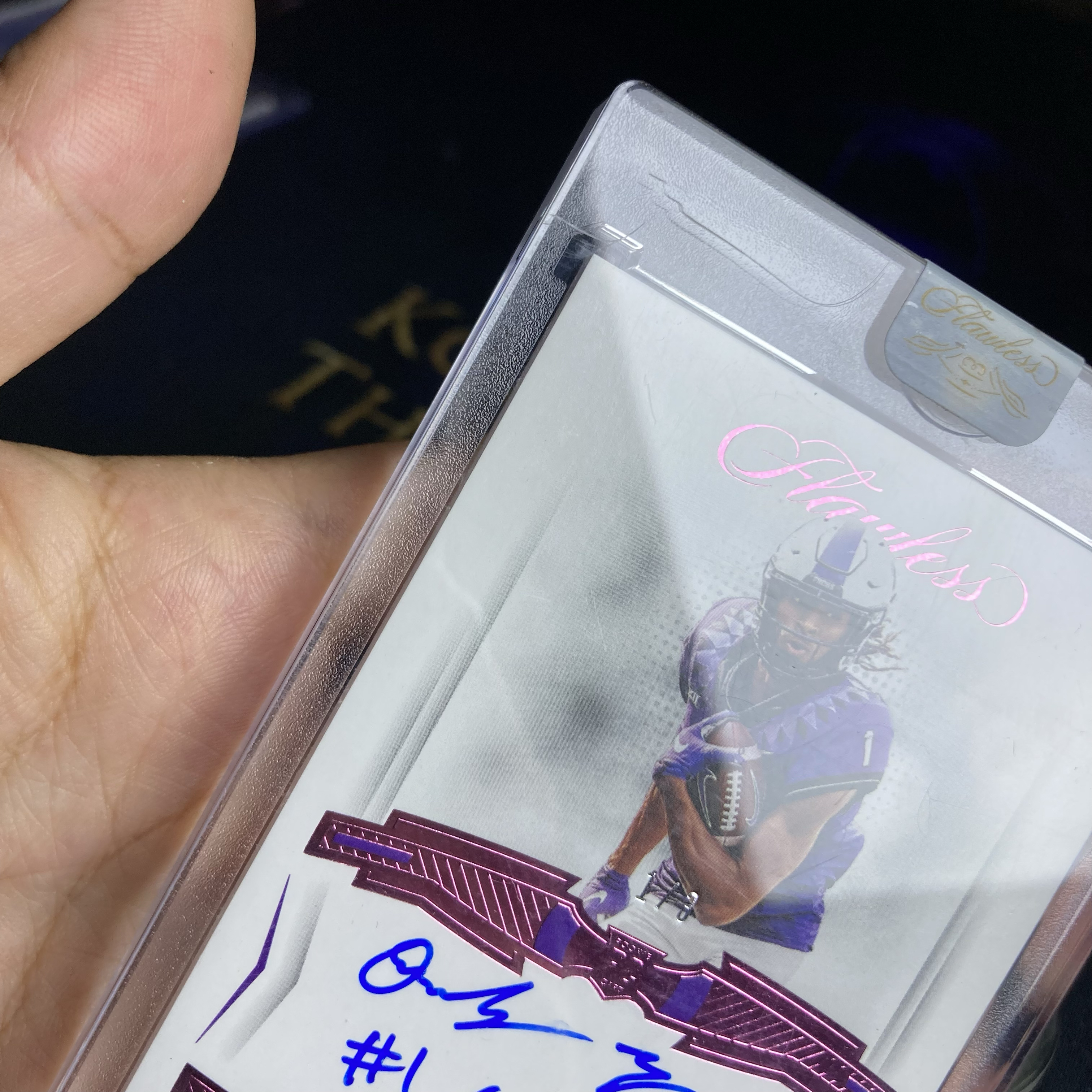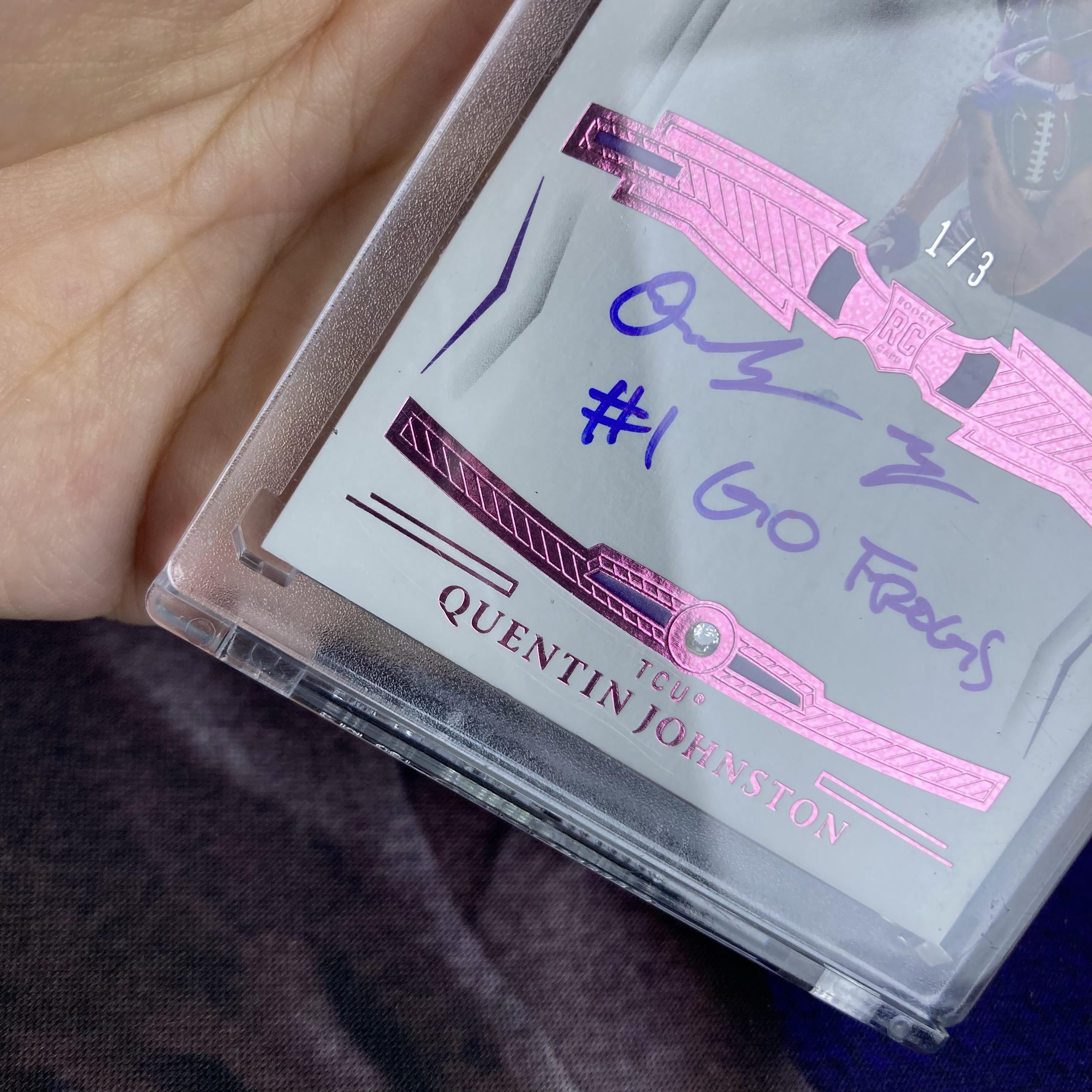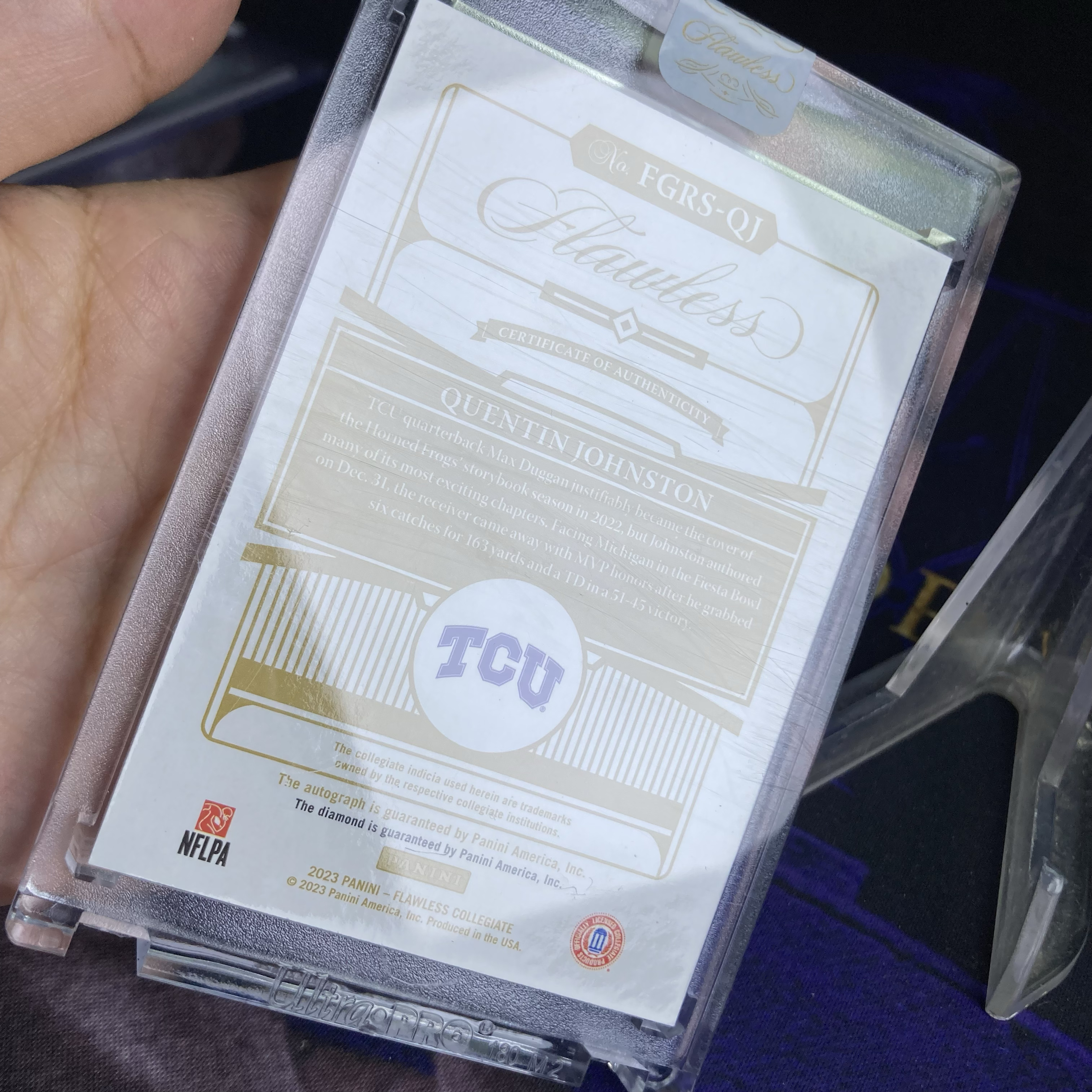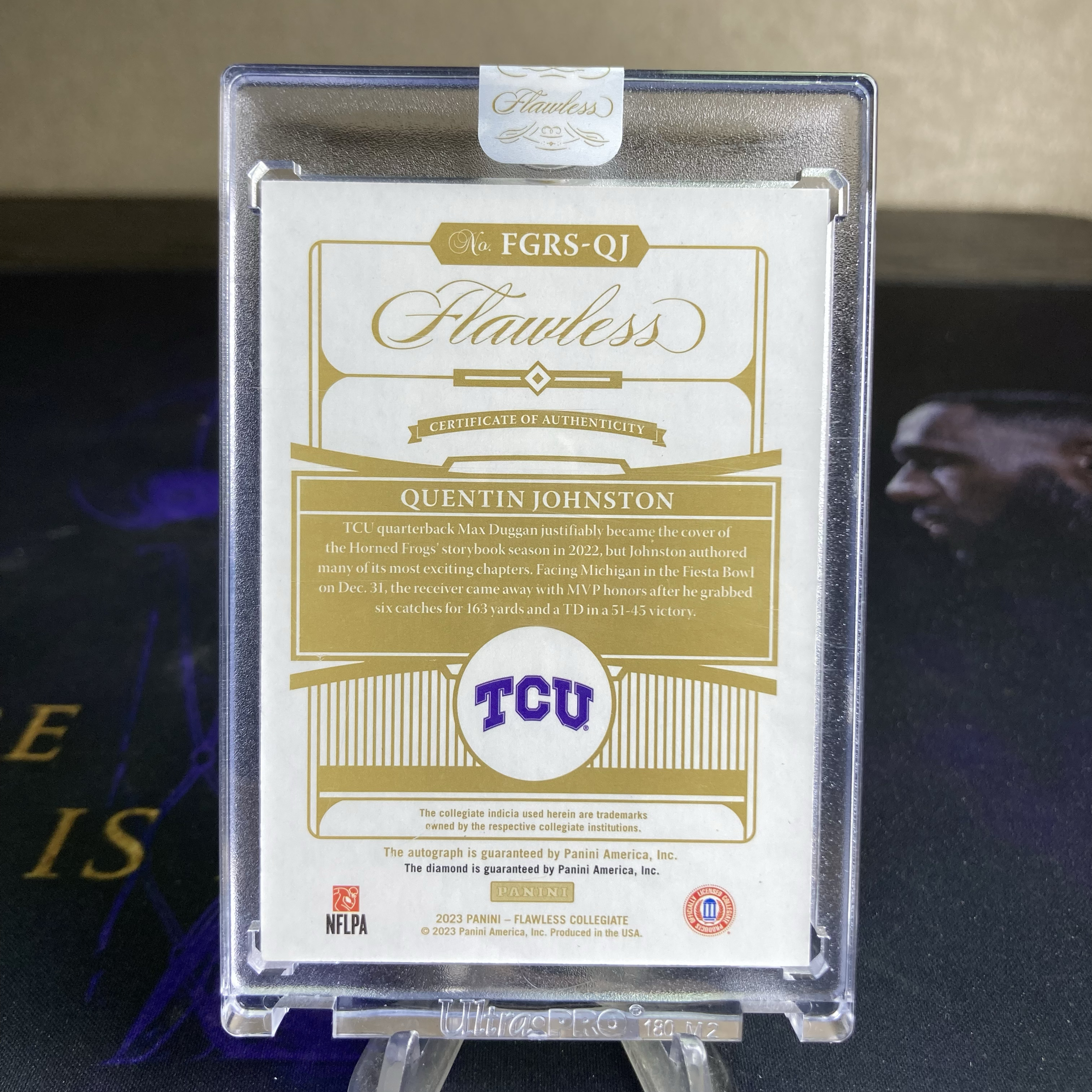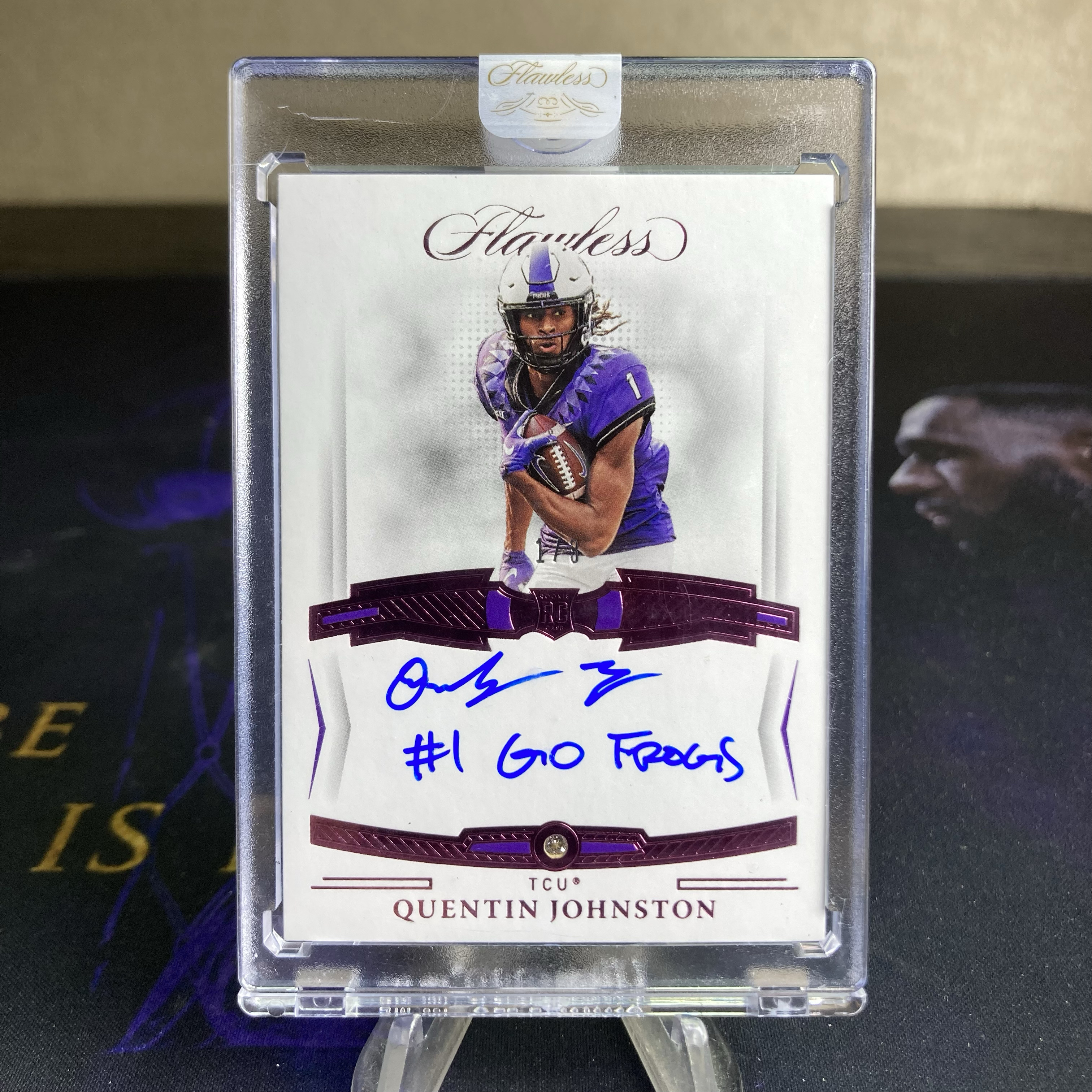 2023 Panini Flawless Quentin Johnston RC 【星卡优转】手提系列 德克萨斯克里斯汀大学 新秀RC 昆汀 约翰斯通 1/3编 首编 签字 卡签 紫平行 原封砖 亦少