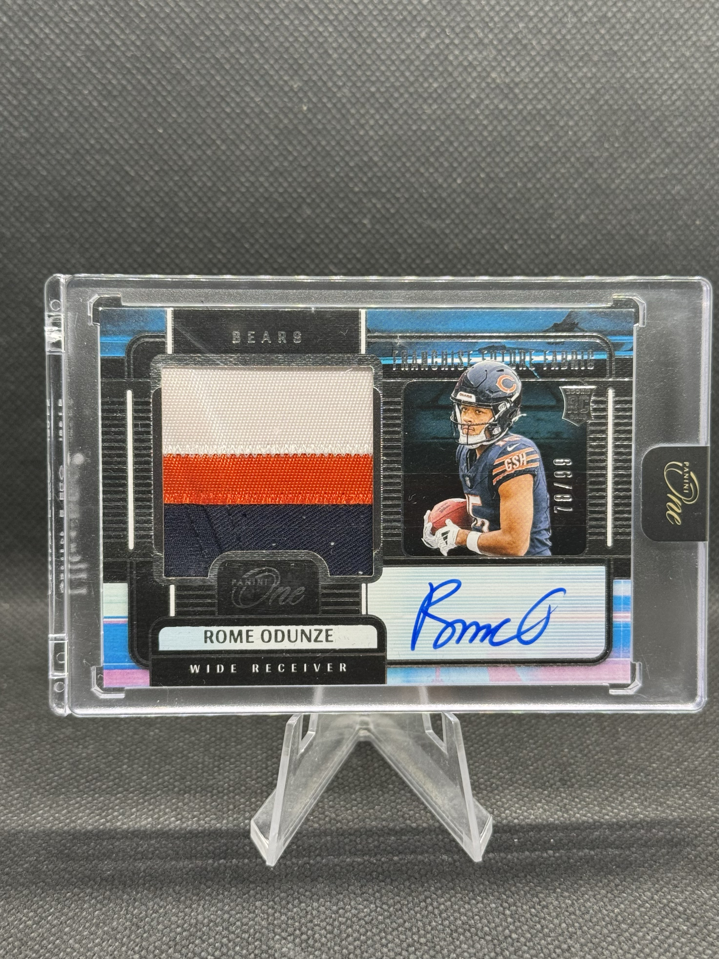2024-25 Panini One and one Rome Odunze RC 囧哥/NFL橄榄球芝加哥熊队大热新秀 罗莫奥敦泽 /99编三色patch 暴力切割RPA签字卡签 专收必备售出不退换