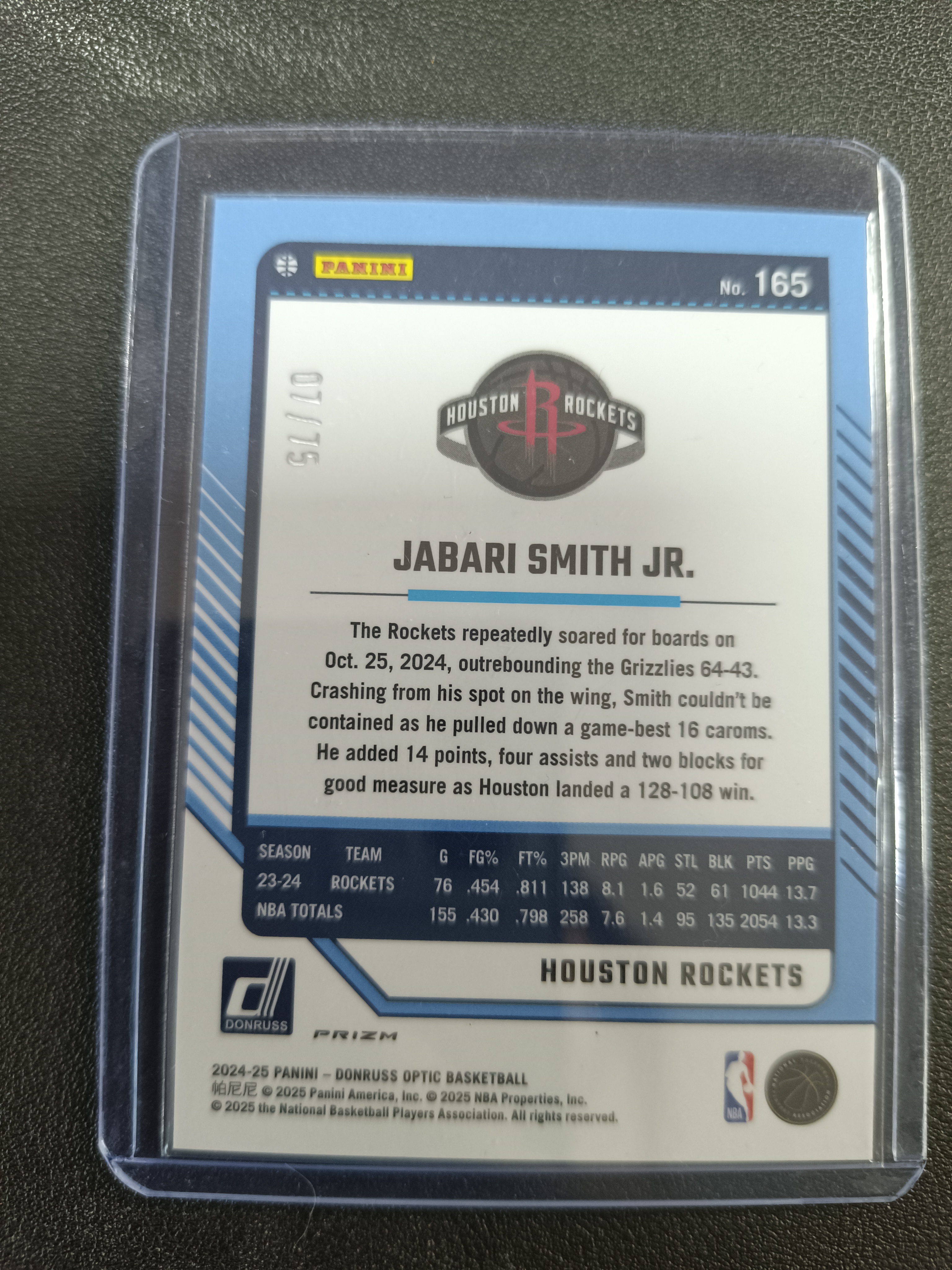 2024-25 Panini Donruss Jabari Smith Jr. 贾巴里 史密斯 optic 金折 折射 07/75编 卡品如图 收藏必备