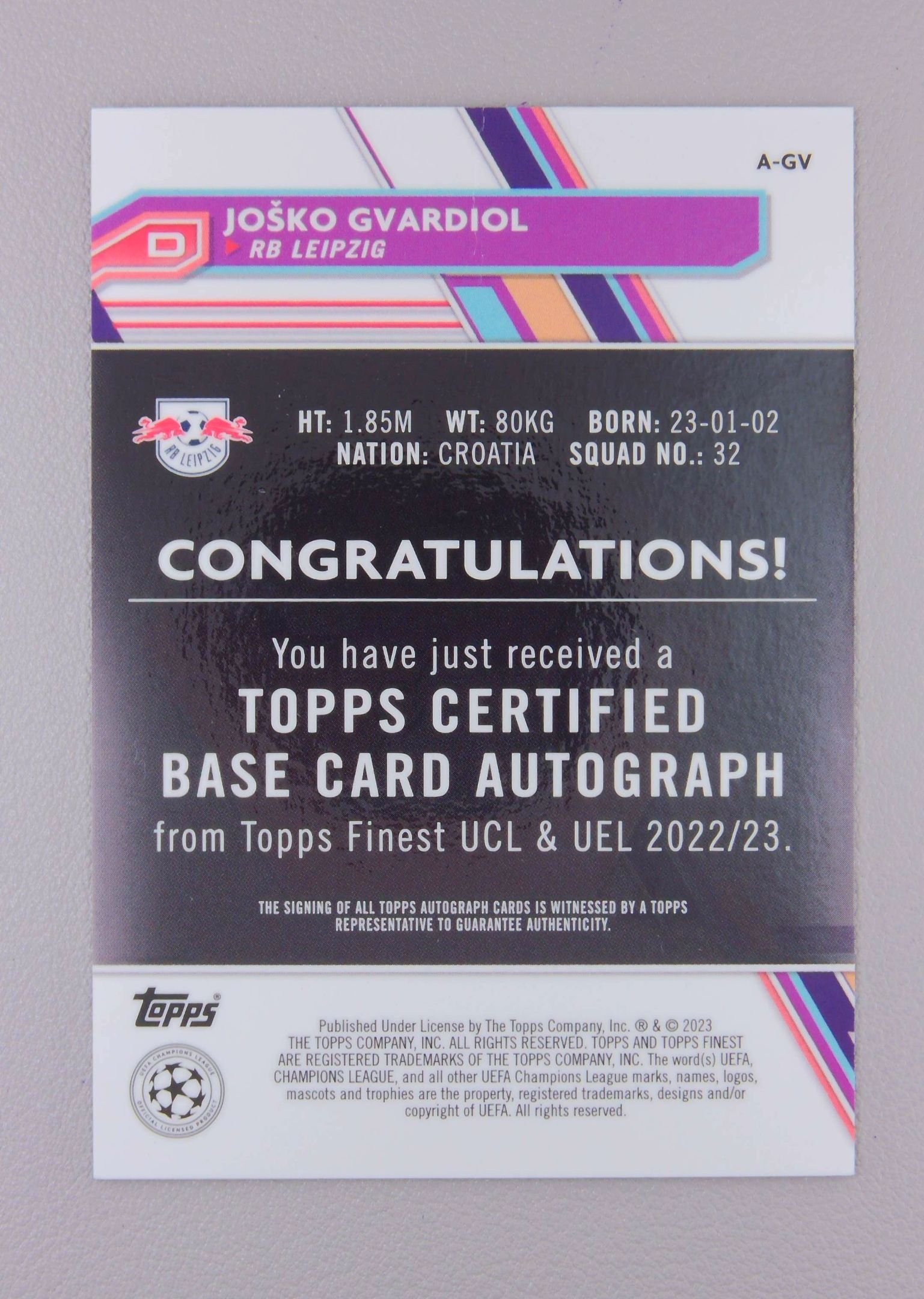 2023 Topps Finest Josko Gvardiol 约什科 格瓦迪奥尔 签字 欧冠 银折 莱比锡红牛 瑕疵 战神无双拍卡 (#10.11xuan)