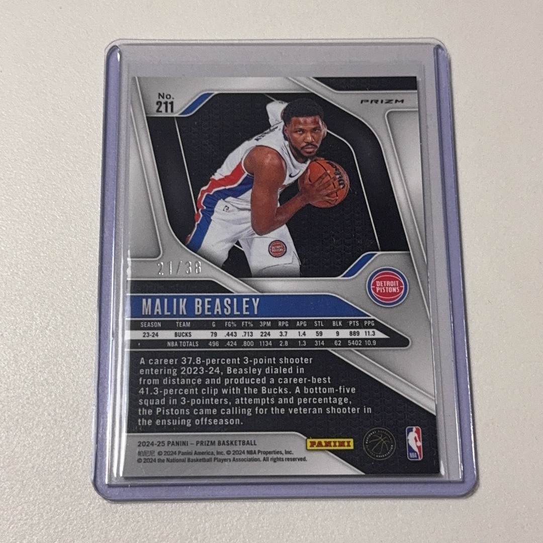 2024-25 Panini Prizm Malik Beasley 【接代卖 回款超快】活塞 马利克 比斯利 白波纹折 21/38编 卡品如图