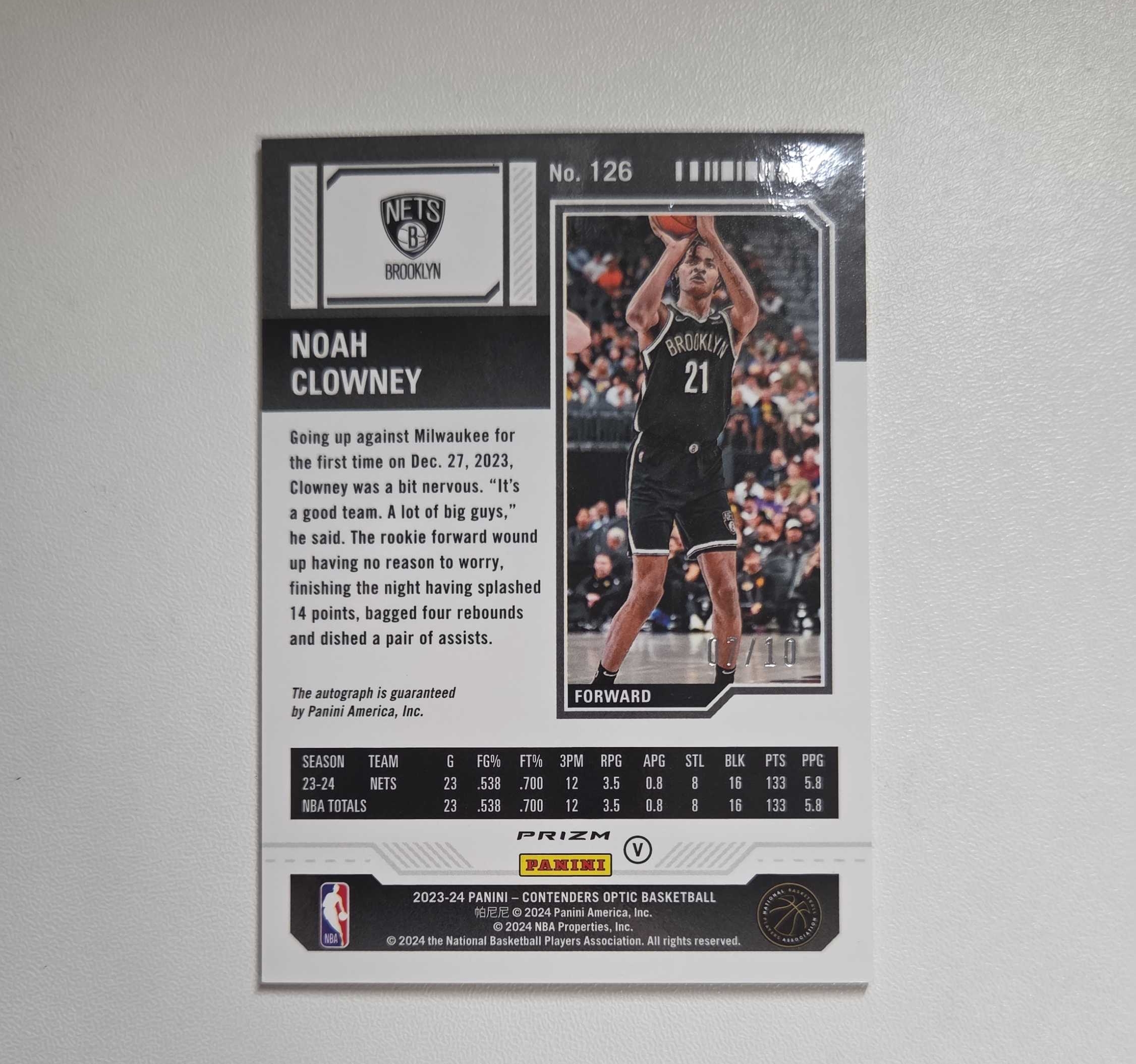 2023-24 Panini Contenders Noah Clowney RC 诺阿克罗尼 克洛尼 球票 7/10编 签字 卡签 金折 新秀rc 微瑕如图3