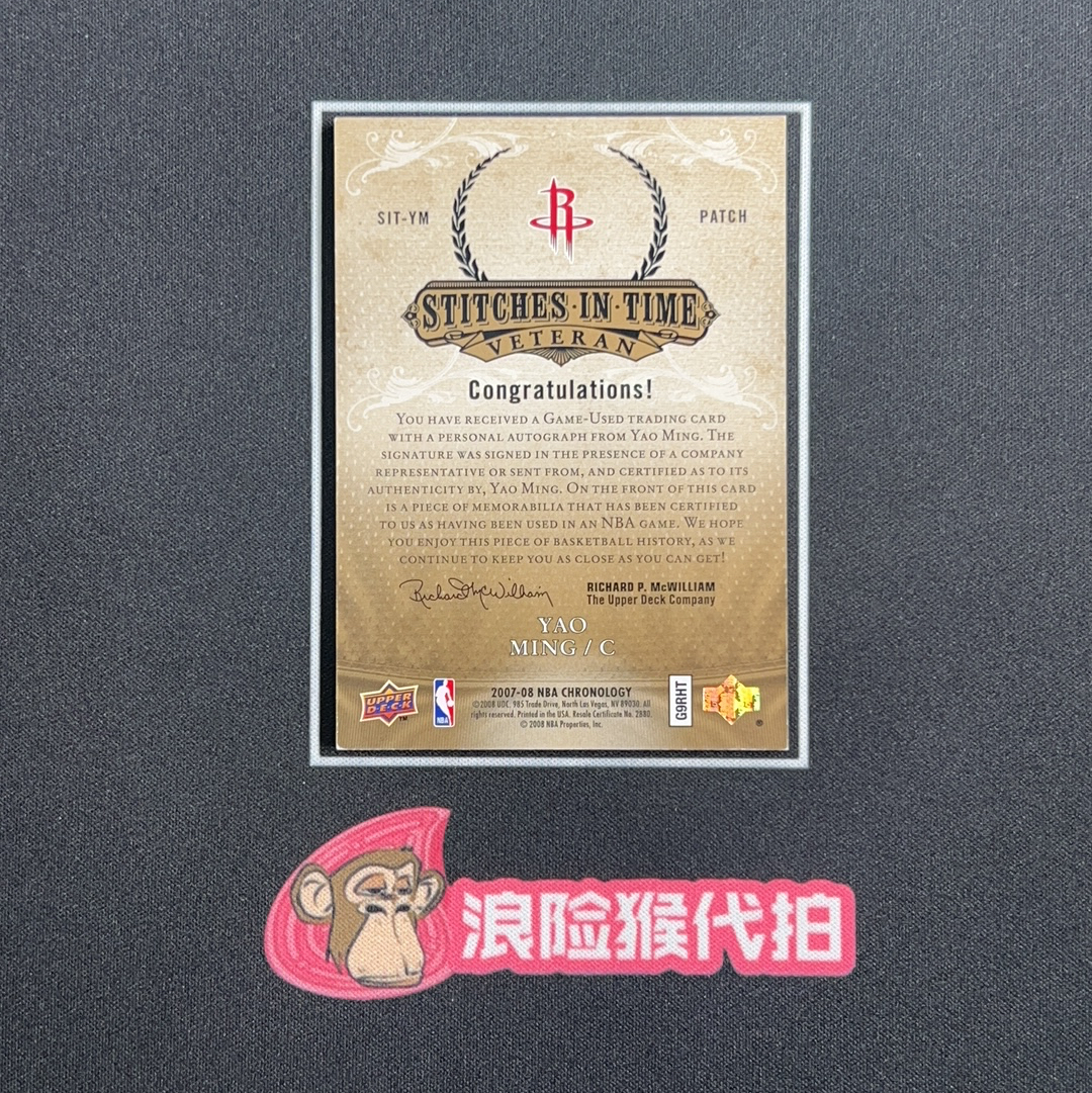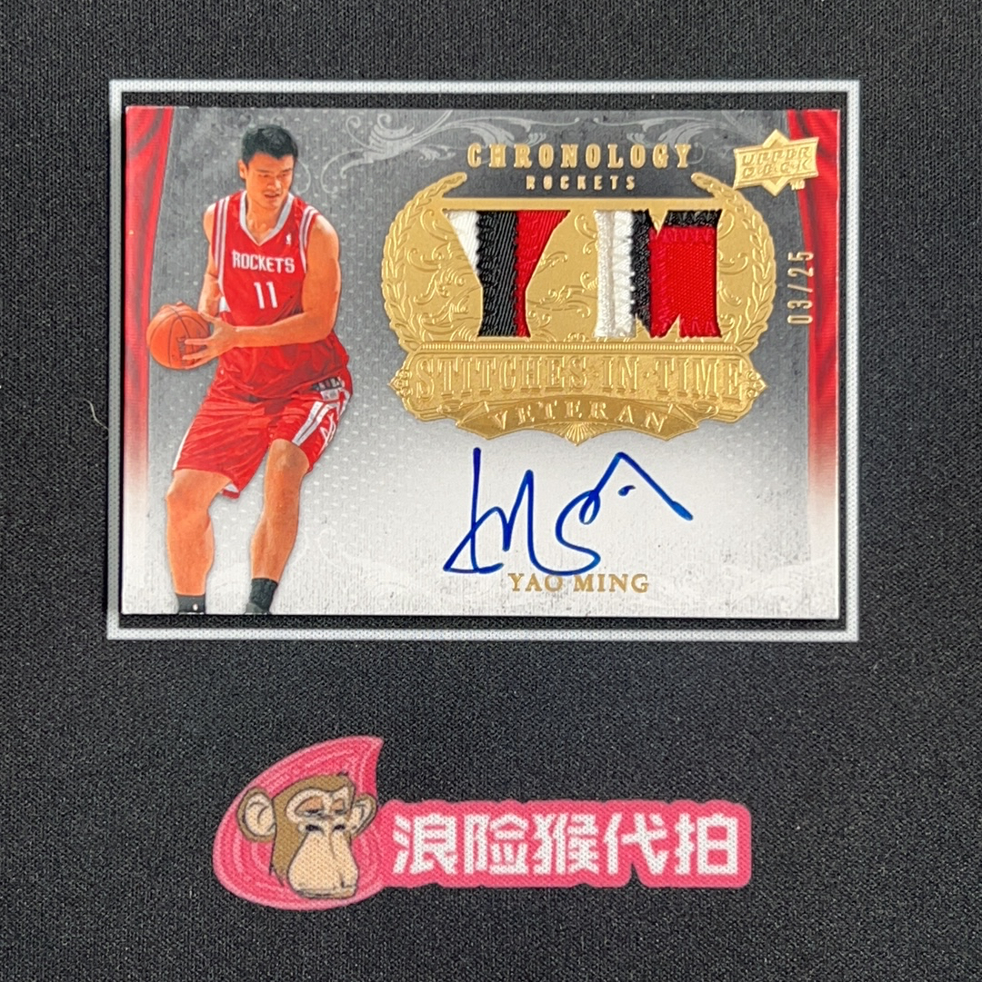 2007-08 Upper Deck Chronology Yao Ming 【浪险猴代拍】姚明 休斯敦火箭 双窗 patch 签字 25编 PA 卡签 切割完美 hit卡 卡品如图