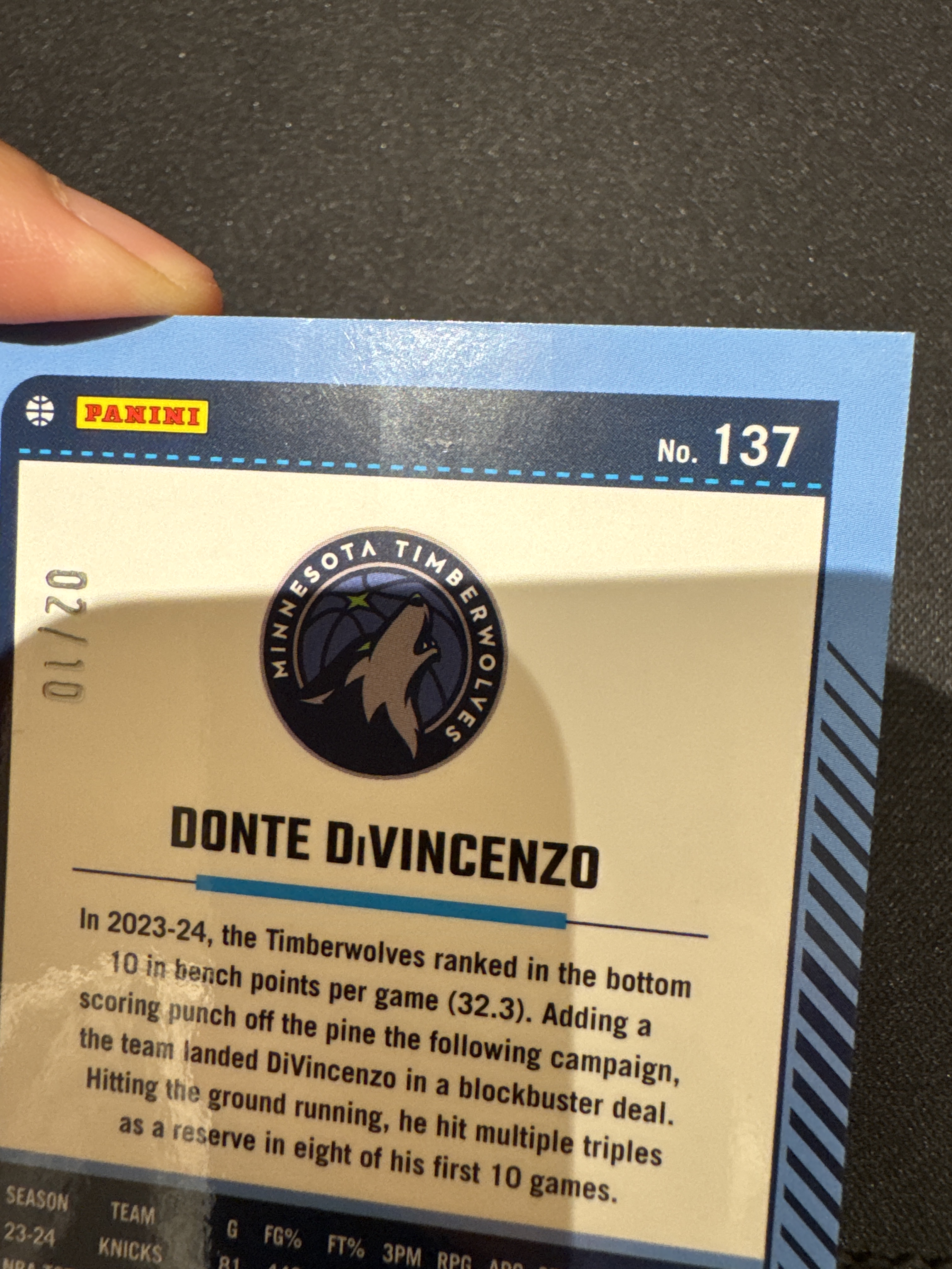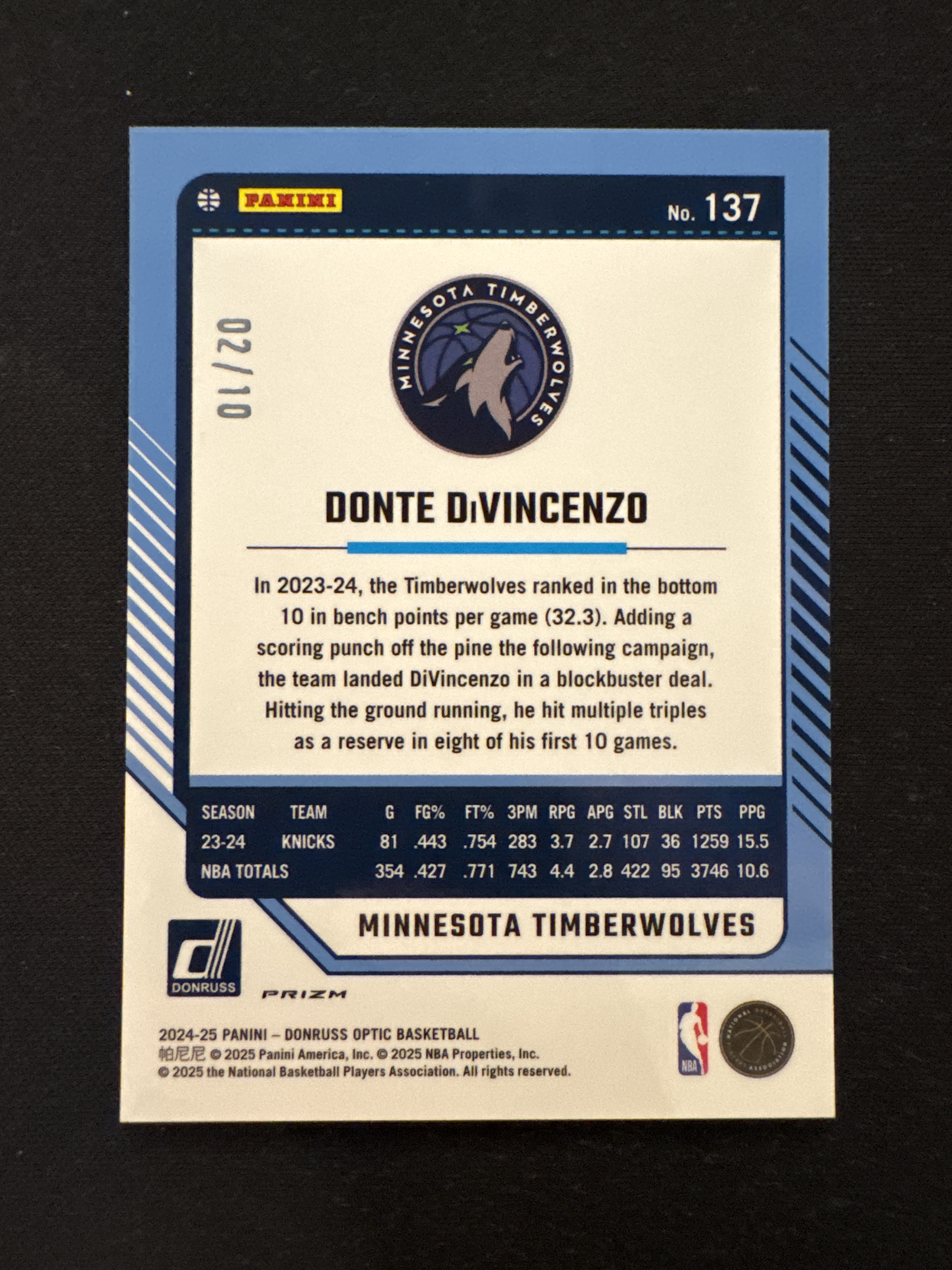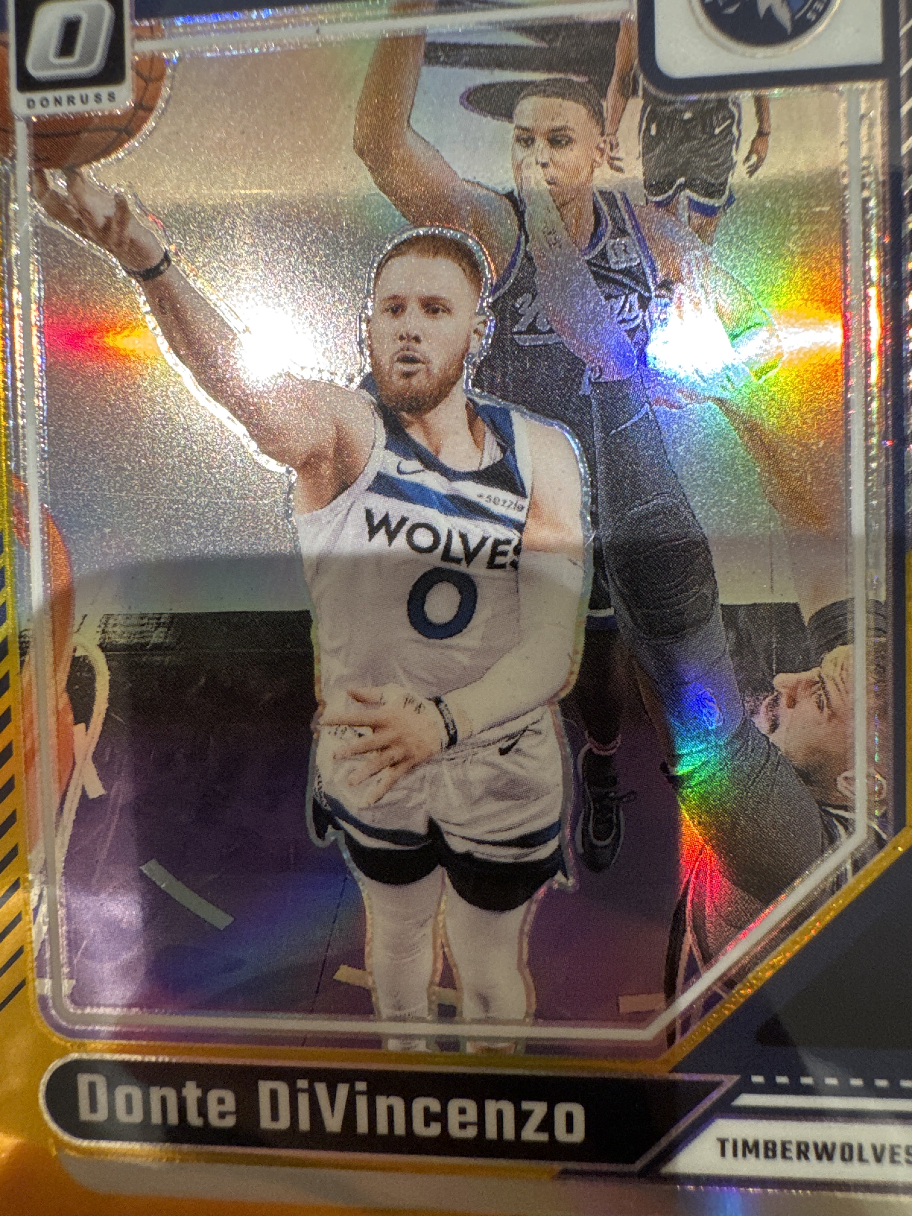 2024-25 Panini Donruss Donte DiVincenzo 杜蕾斯 OP 森林狼 丹特 迪文森佐 02/10编 超低编 金折 收藏凑套必备 微瑕如图