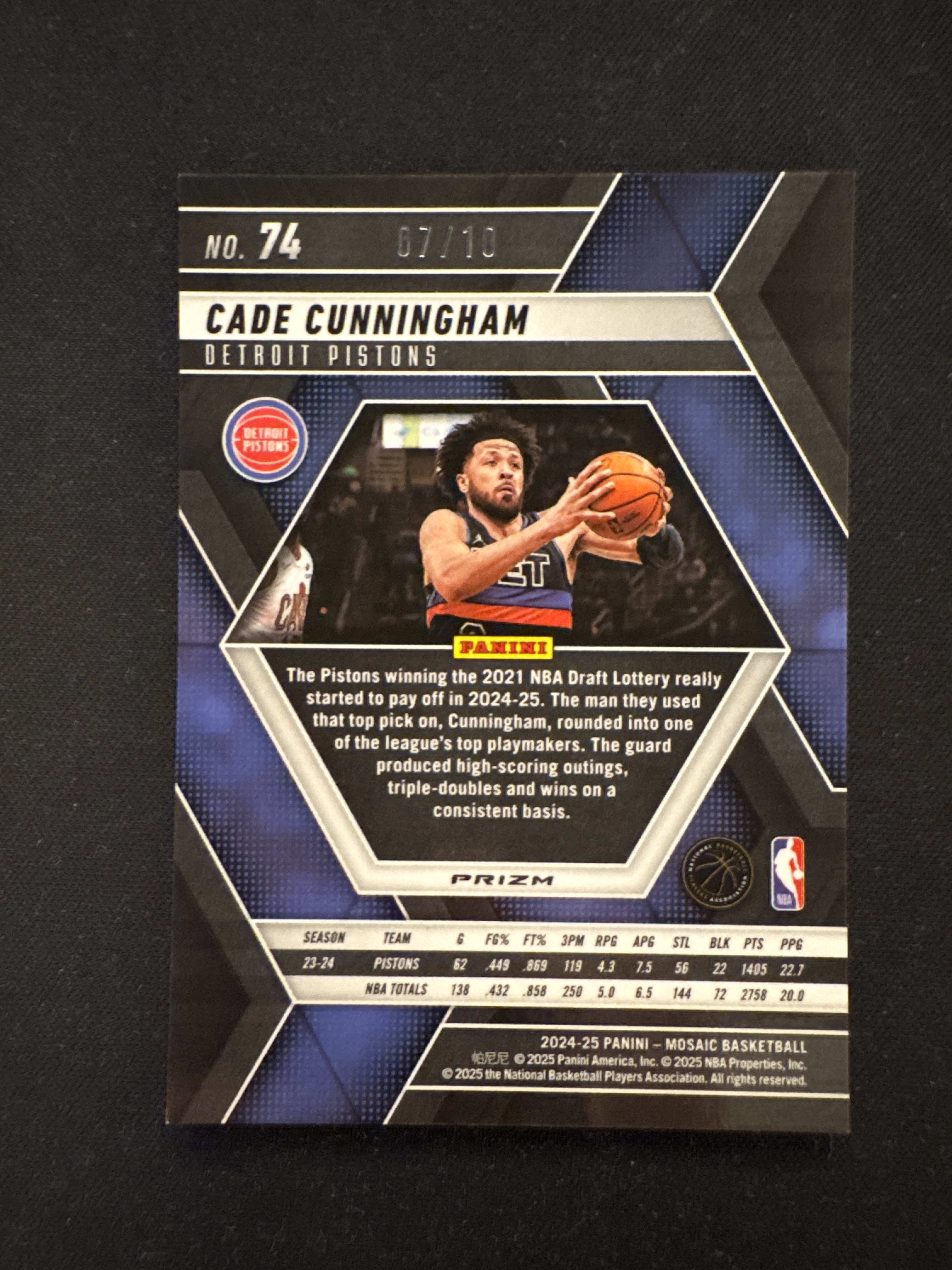 2024-25 Panini Mosaic Cade Cunningham 马赛克 活塞 凯德 康宁汉姆 CC 07/10编 超低编 金圈圈折 收藏凑套必备 微瑕如图