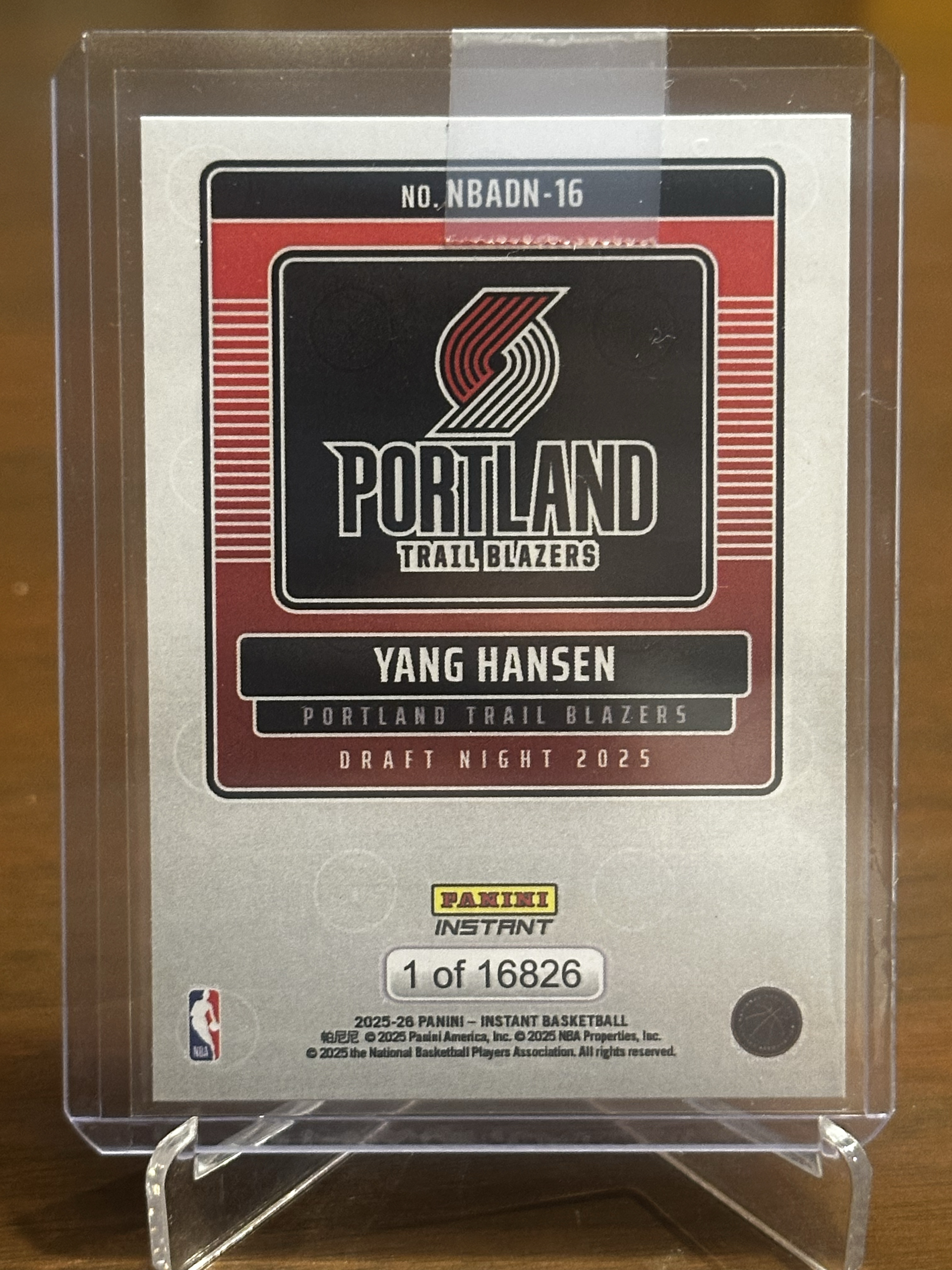 2025 Panini Instant 杨瀚森 RC 杨瀚森 新秀 瞬时系列 16826编 选秀夜定妆照选图 开拓者 投资必赚 卡品如图