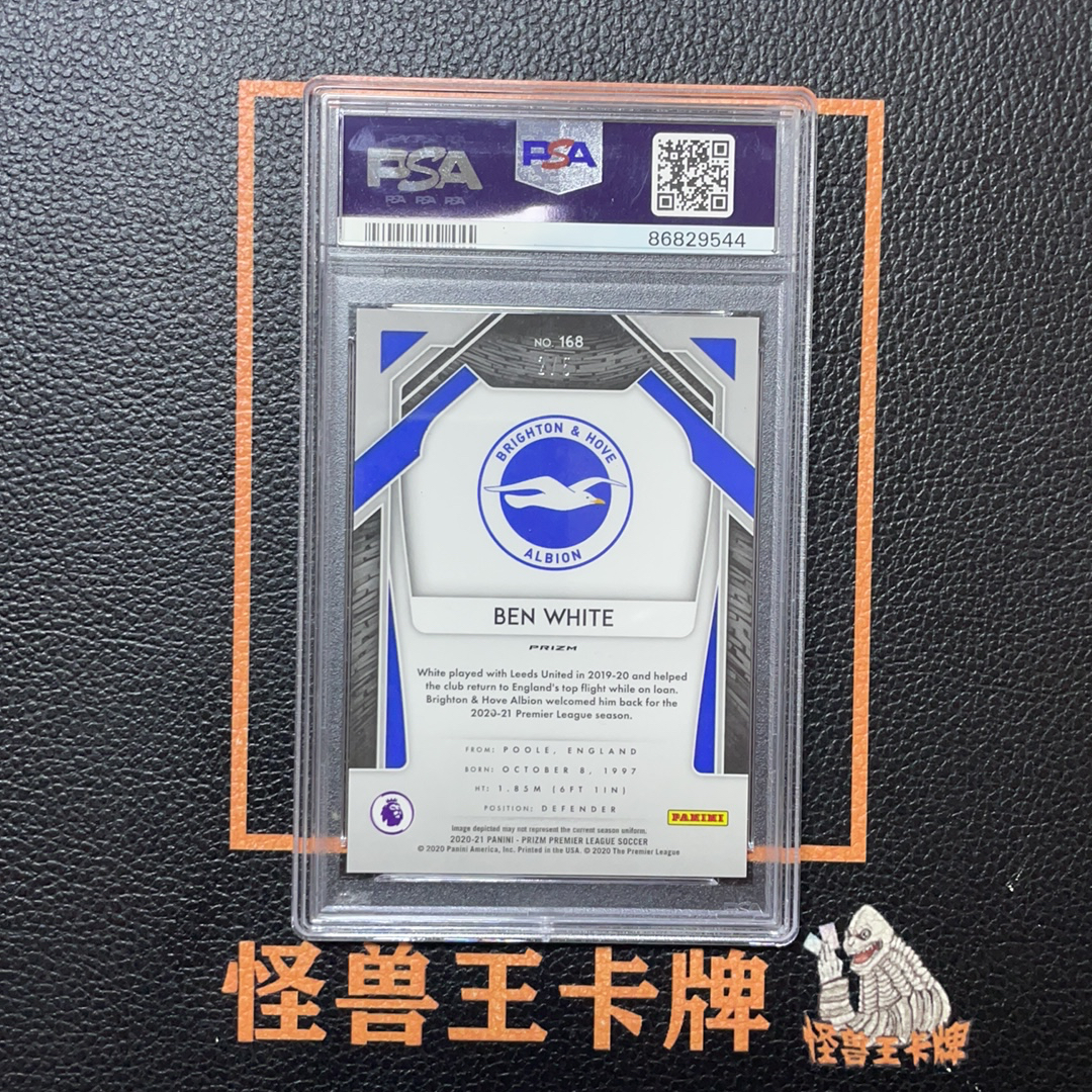 (怪兽拍卖) GSW-B56 2020-21 Panini Prizm RC Ben White 布莱顿 阿森纳 英格兰 本怀特 白本 新秀 英超PZ 2/5编 减法同背 爆金折 PSA 10分