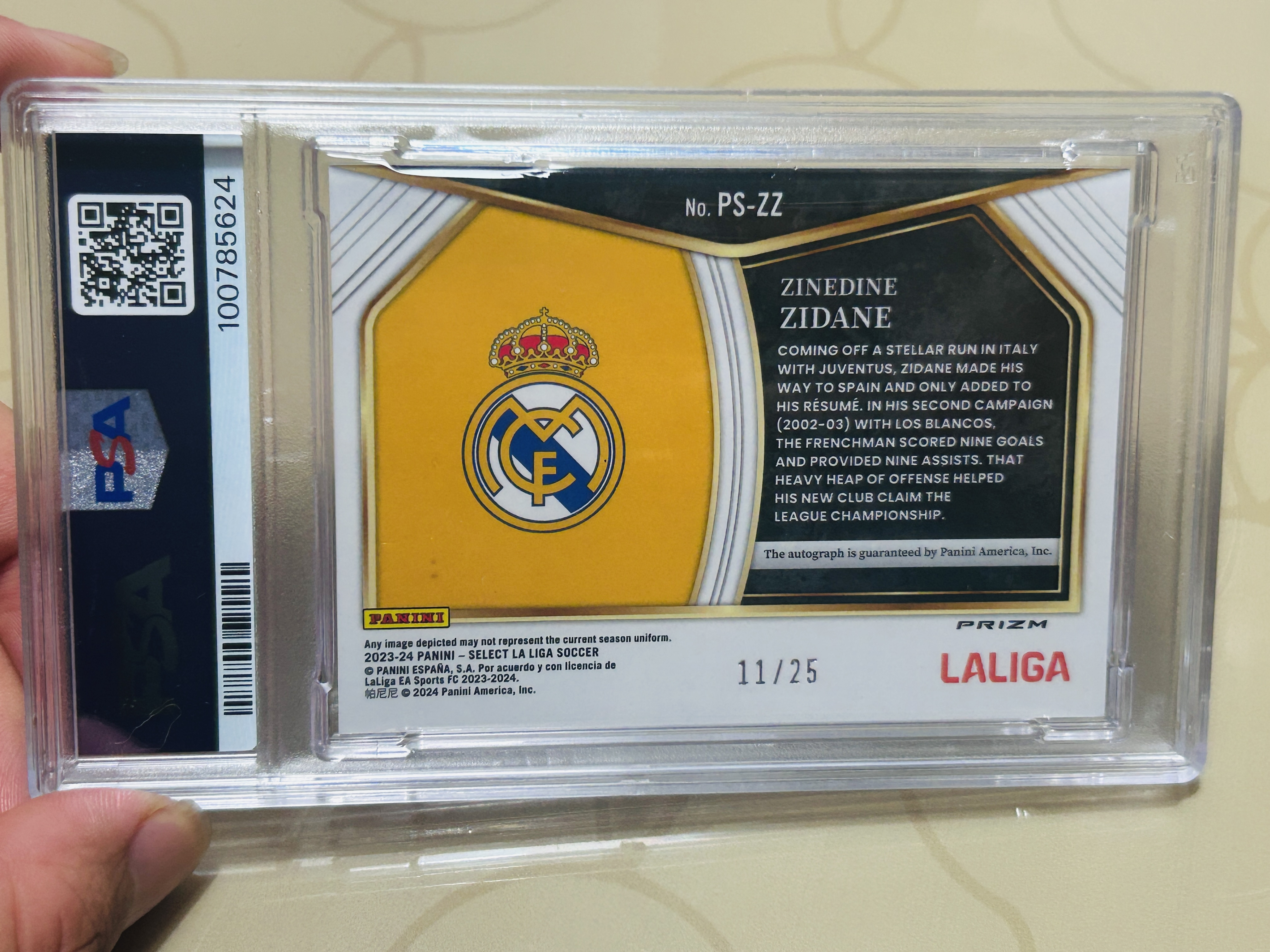 2023-24 Panini Select Zinedine Zidane 皇马 法国 齐达内 中场大师 传奇教练 世界杯 欧冠 世界足球先生 SELECT 紫折 11/25 PSA 签字满分