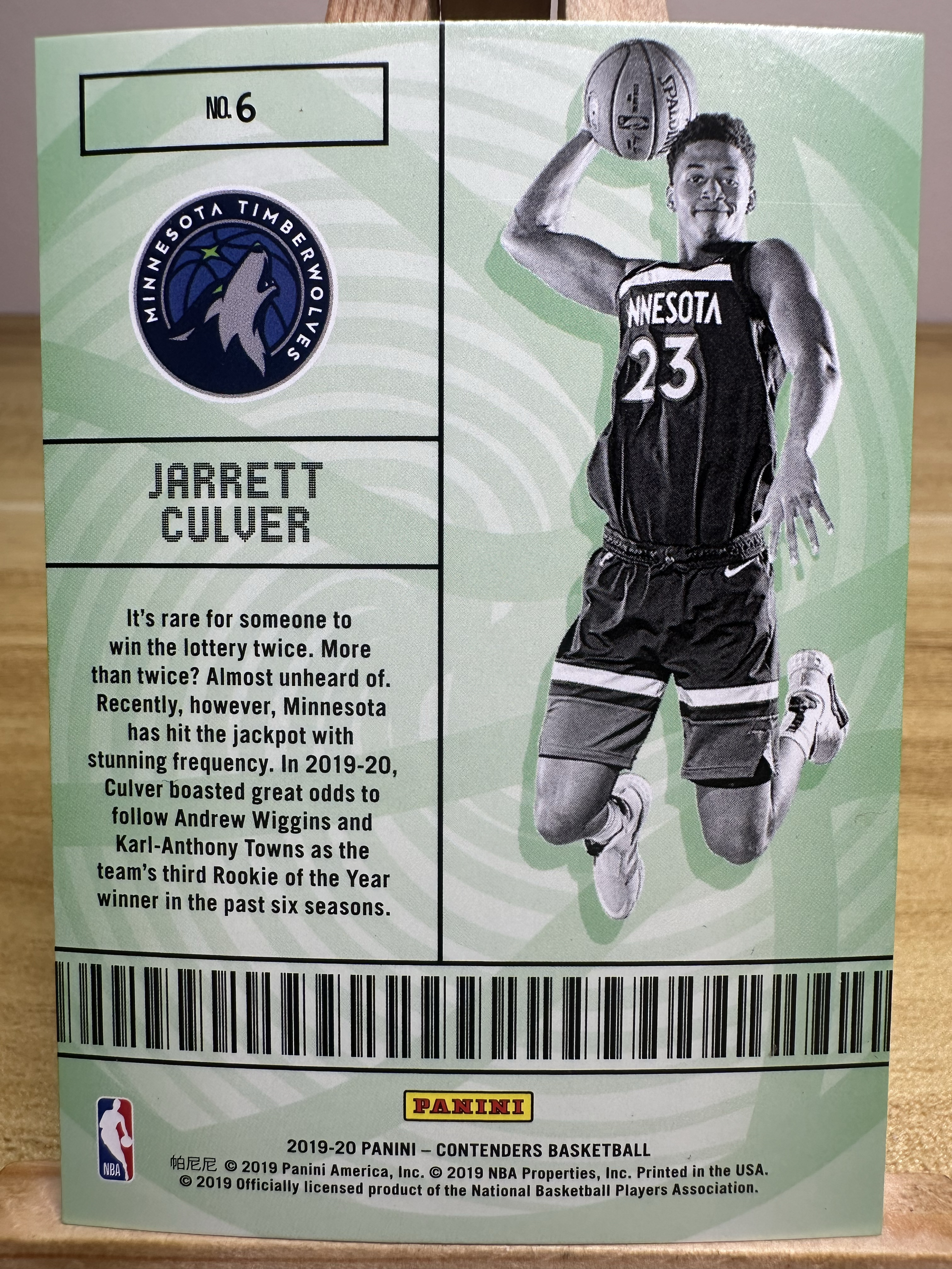 2019-20 Panini Contenders Jarrett Culver RC 新秀 森林狼 贾勒特 卡尔弗 球票 选秀 特卡 绿点点 折射 拍前请看描述 臻成免费代卖 b488