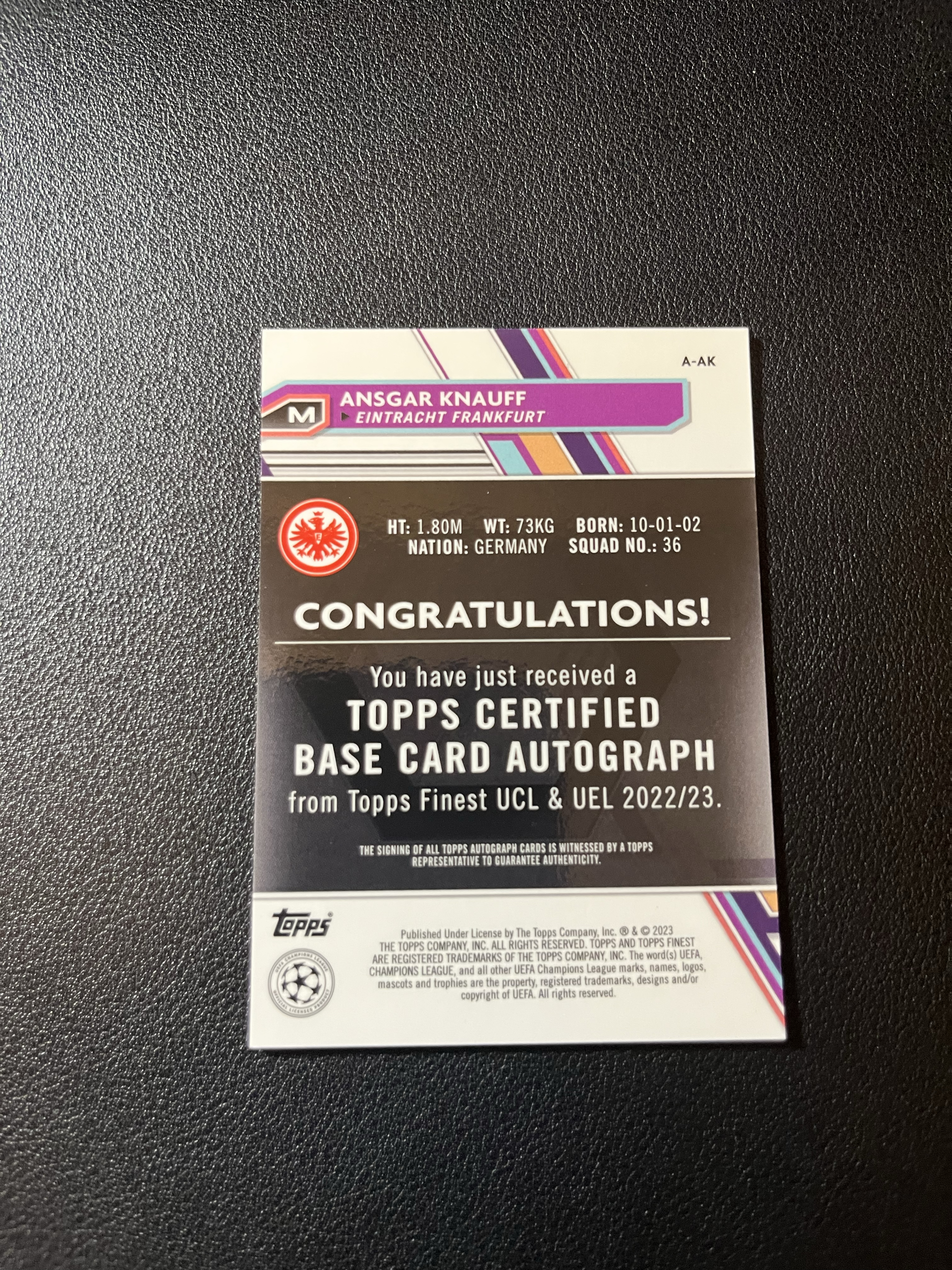 2023 Topps Finest Ansgar Knauff 欧冠finest 法兰克福 克瑙夫 银折 签字 完美签 实卡精美 投资收藏必备 叶