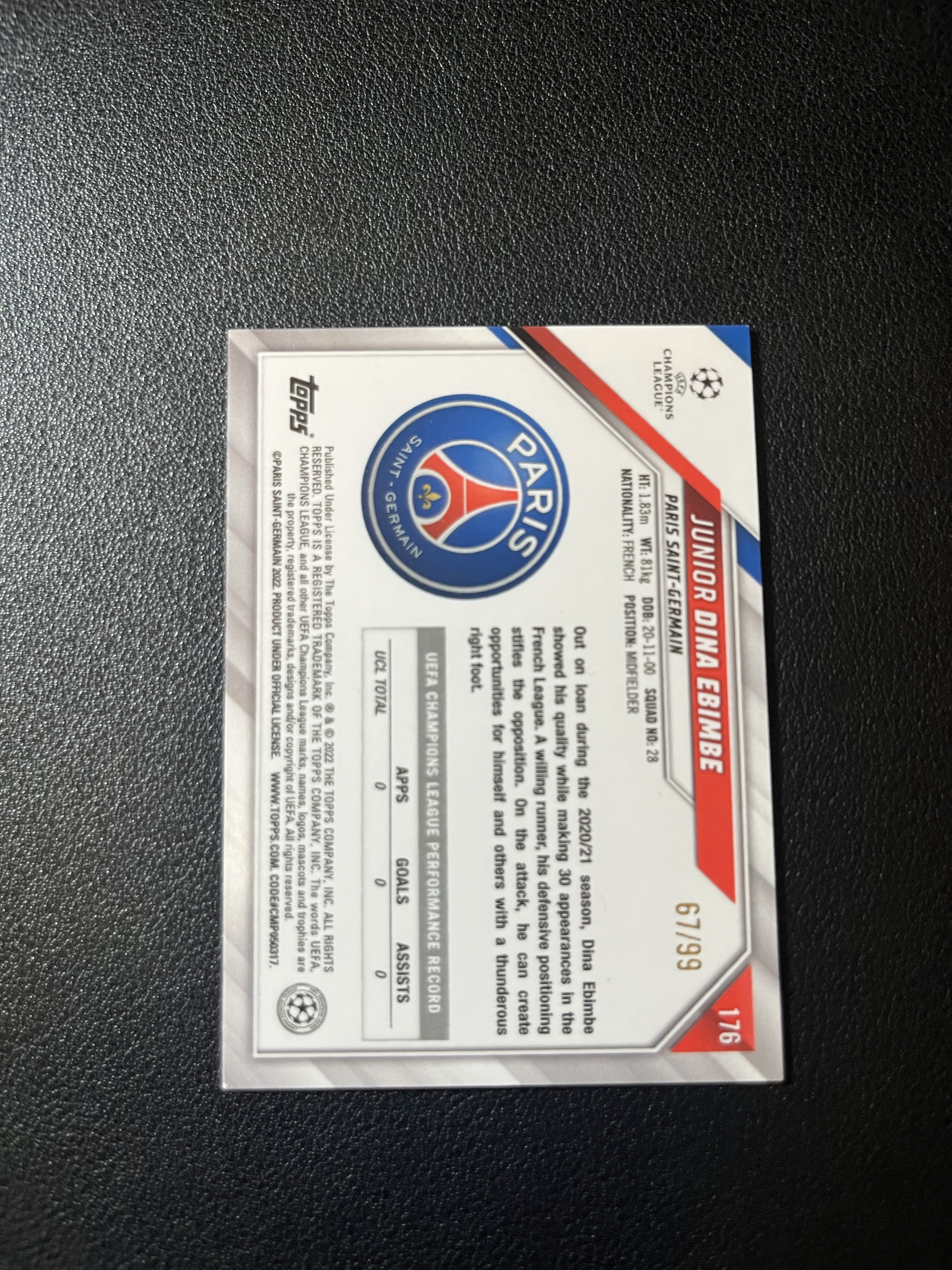 2022 Topps Chrome Junior Dina Ebimbe RC 欧冠蓝宝石 巴黎圣日耳曼 埃宾贝 新秀rc 99编金碎冰折 67/99 实卡精美 投资收藏必备 叶