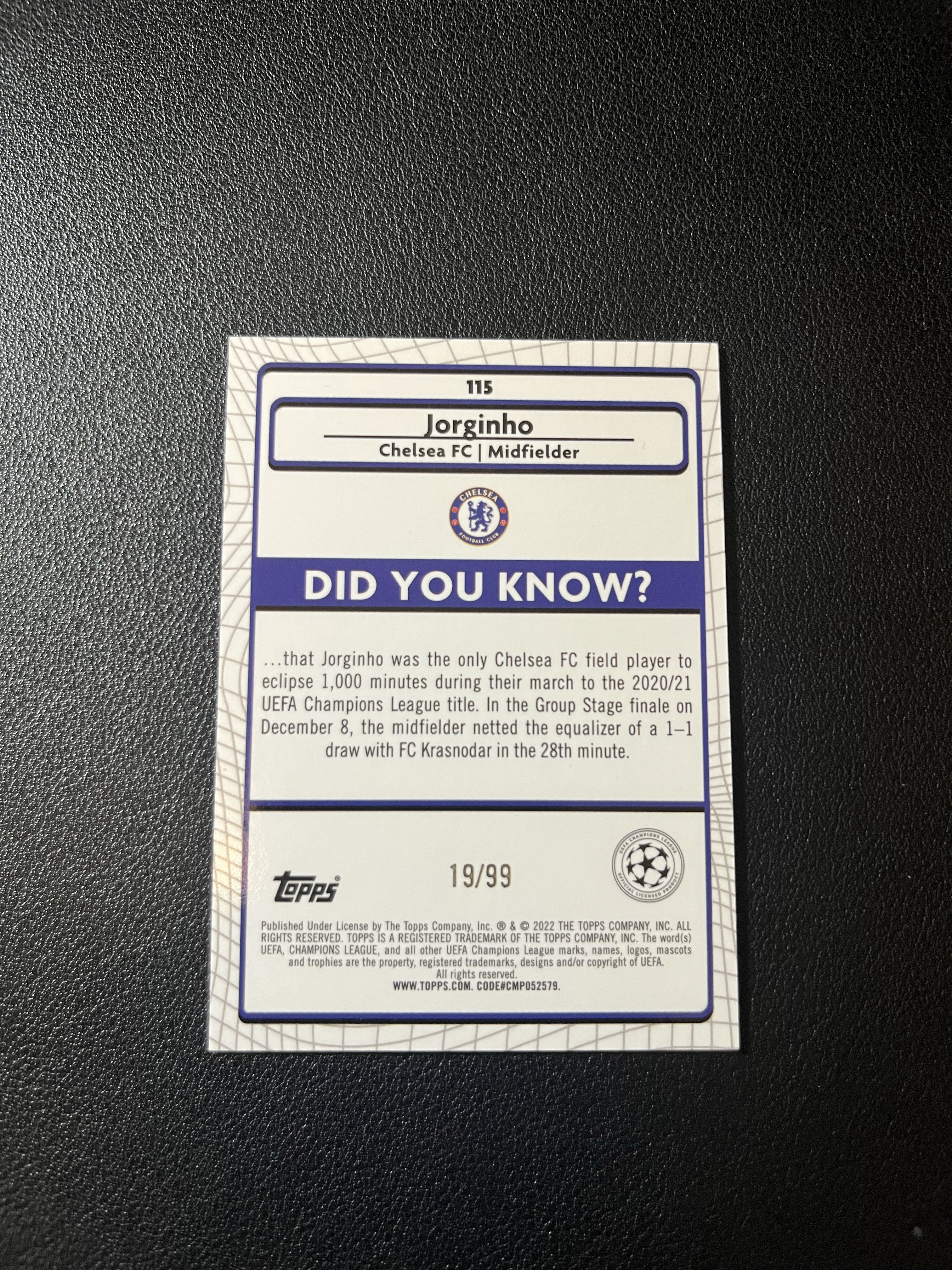 2022 Topps Merlin chrome jorginho 梅林系列 切尔西 若日尼奥 99编绿mojo折 19/99 实卡精美 投资收藏必备 叶