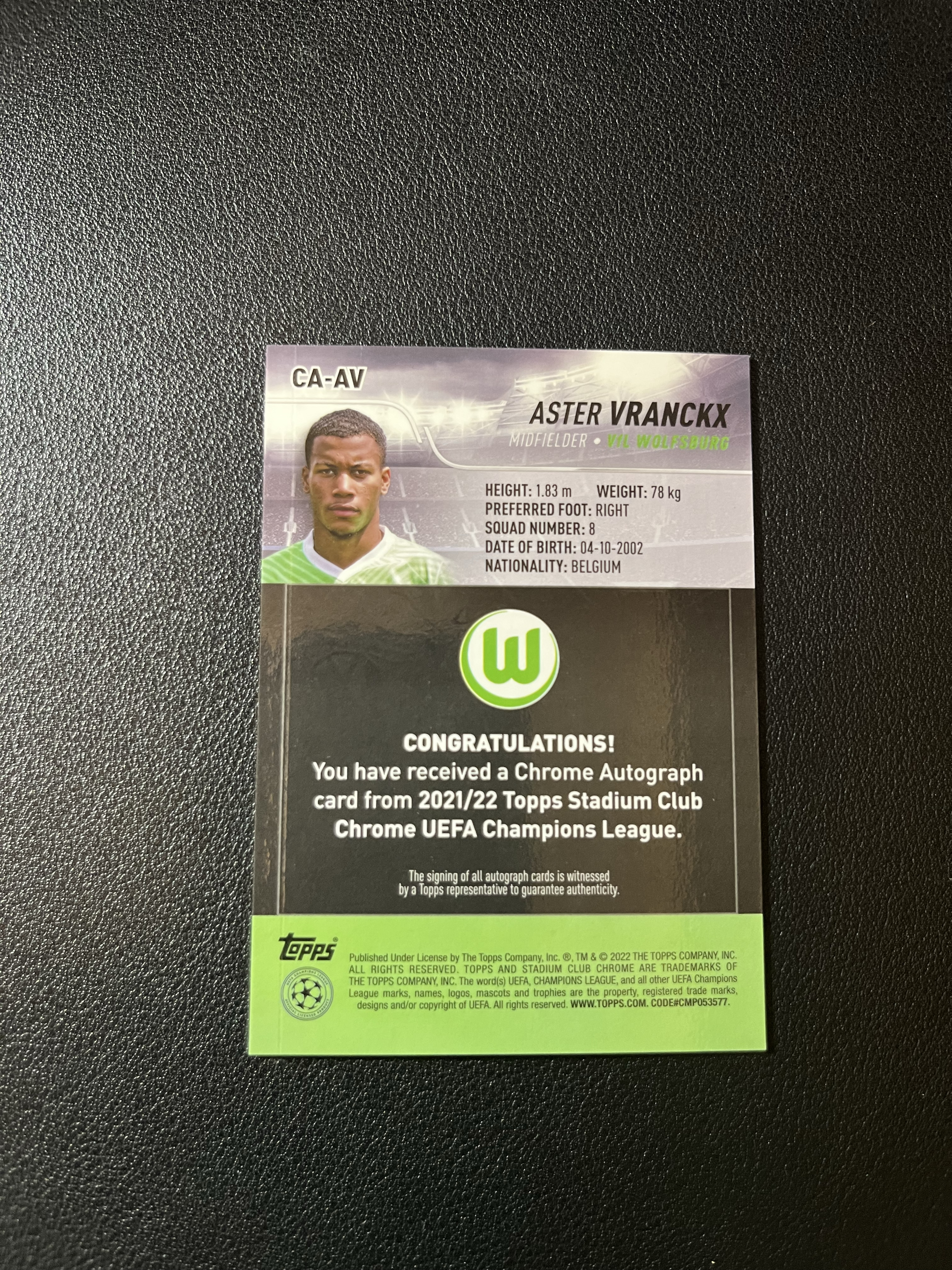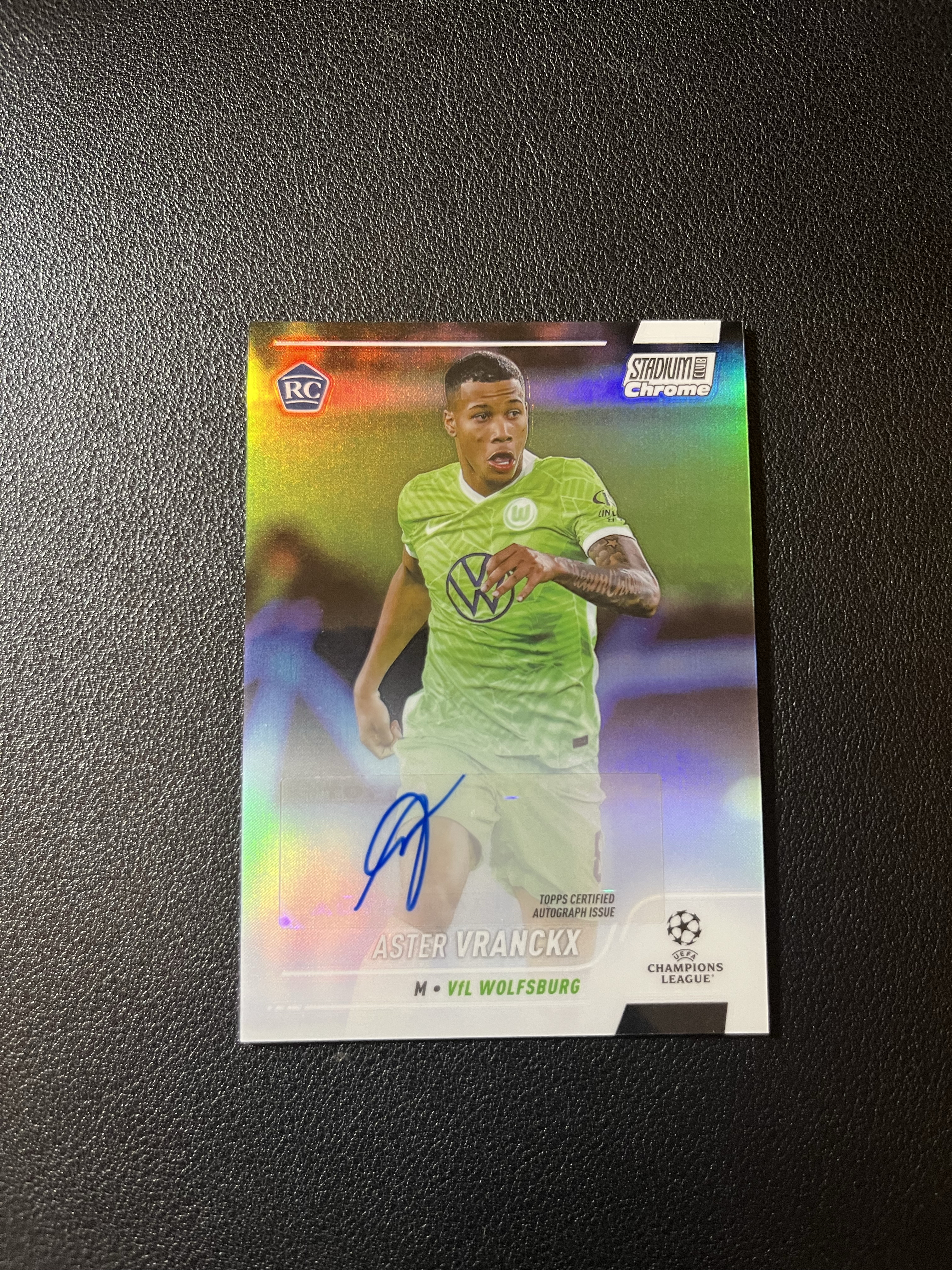 2022 Topps Stadium Club Chrome Aster Vranckx 欧冠竞技场 沃尔夫斯堡 弗兰克斯 新秀rc 银折 签字 实卡精美 投资收藏必备 叶