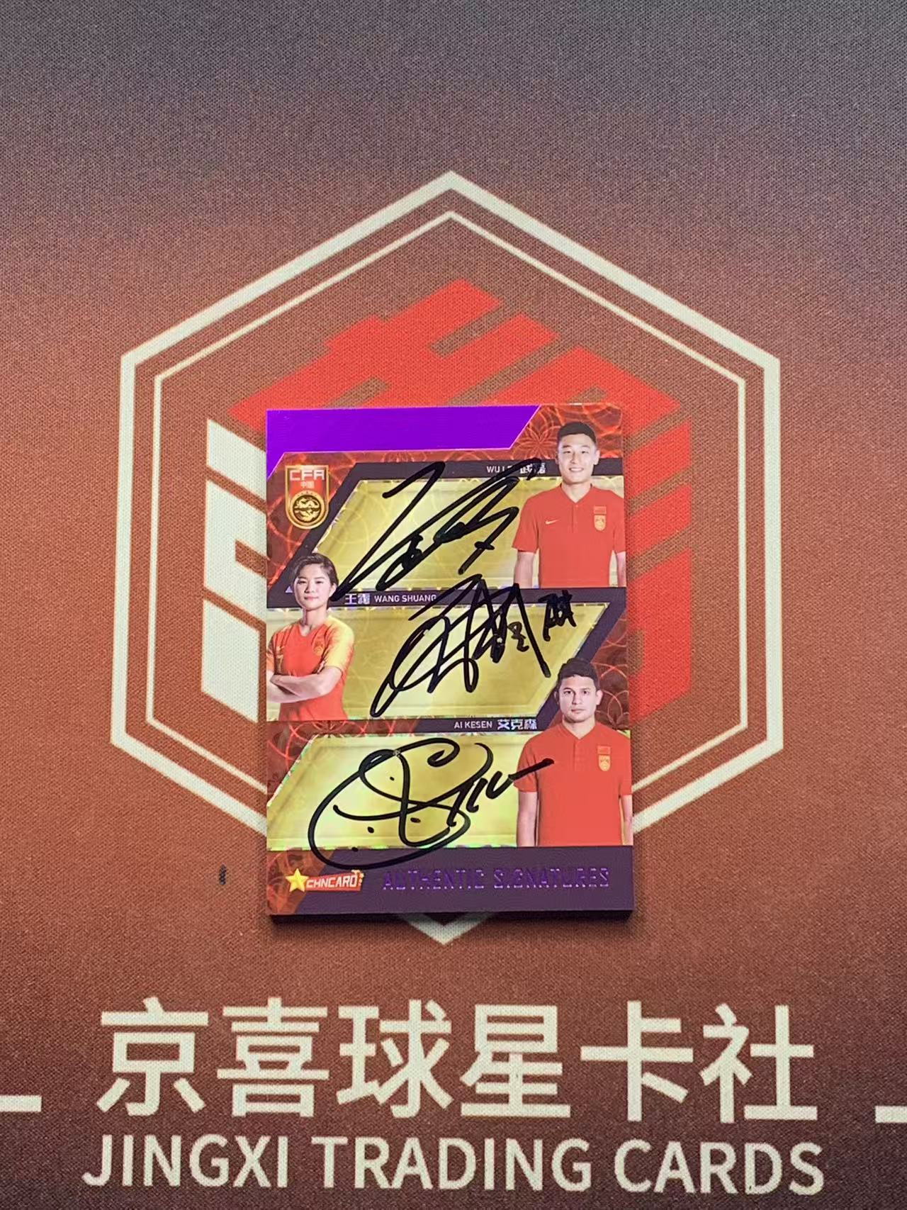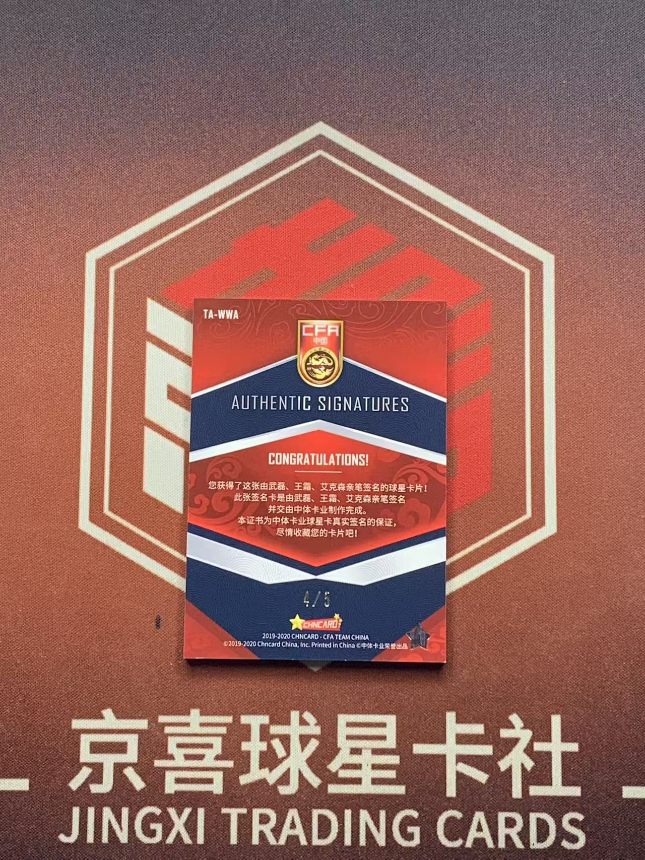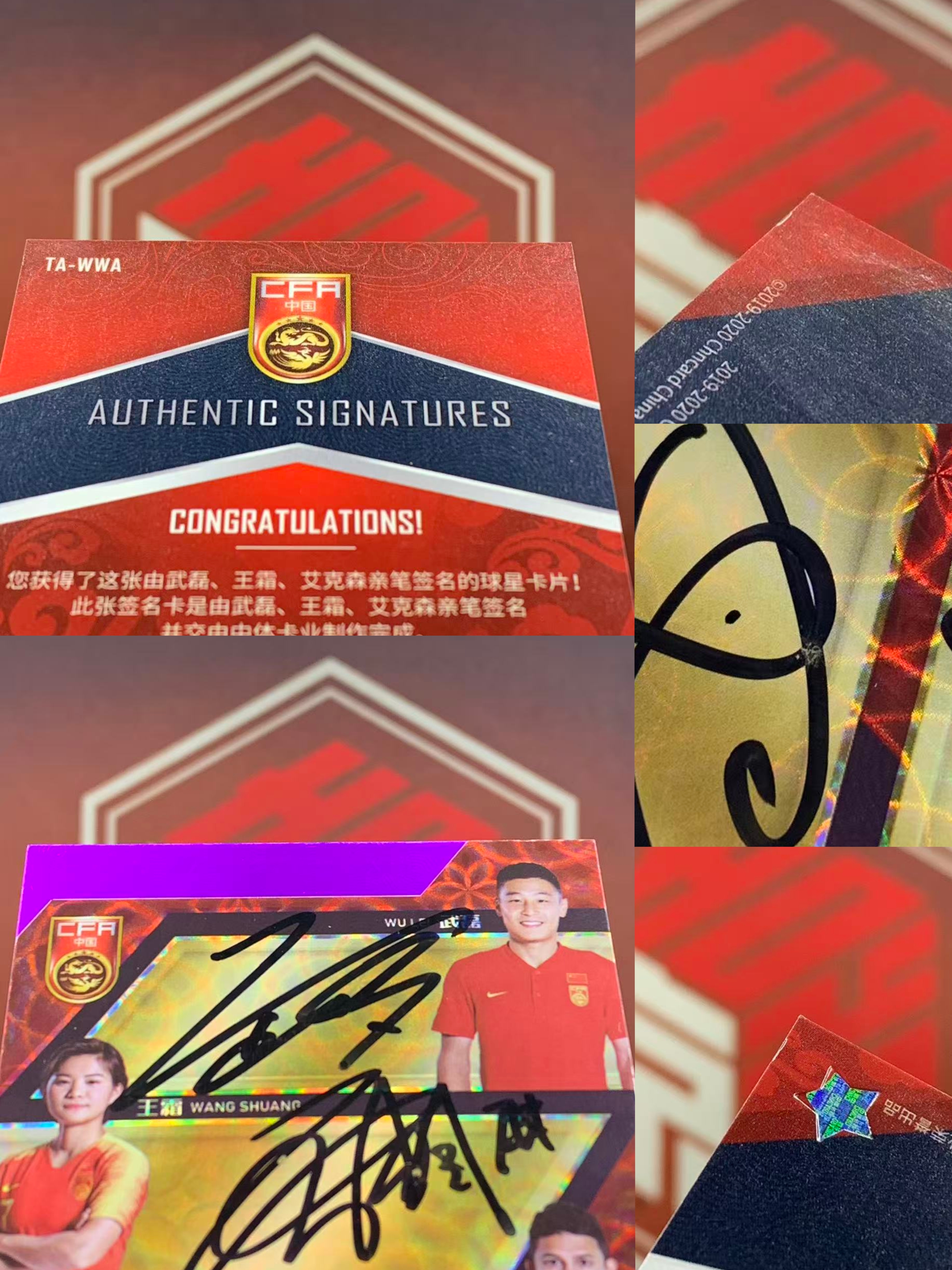 2019-20 中体卡业 CFA Team China 武磊 【京喜代拍-大喇叭】中国之队 紫折 武磊 王霜 艾克森 三人签字 卡签 组合签 4/5编 好人好卡 卡品瑕疵如图 介意勿拍