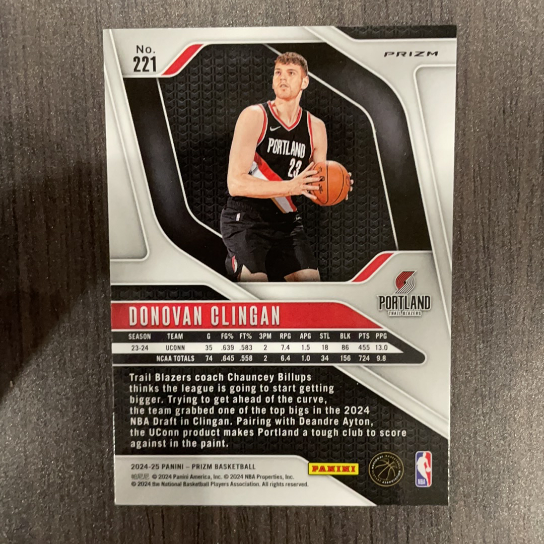 2024-25 Panini Prizm Donovan Clingan RC Prizm 多诺万 克林根 RC 新秀 银折 开拓者