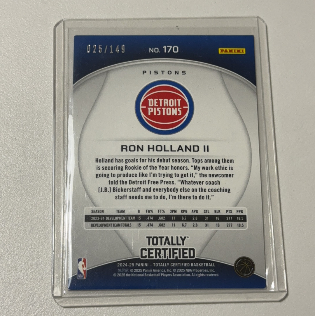 2024-25 Panini Totally Certified Ron Holland RC 【接代卖 回款超快】卫生巾 活塞 霍兰德 新秀 25/149 蓝宝石 卡品如图