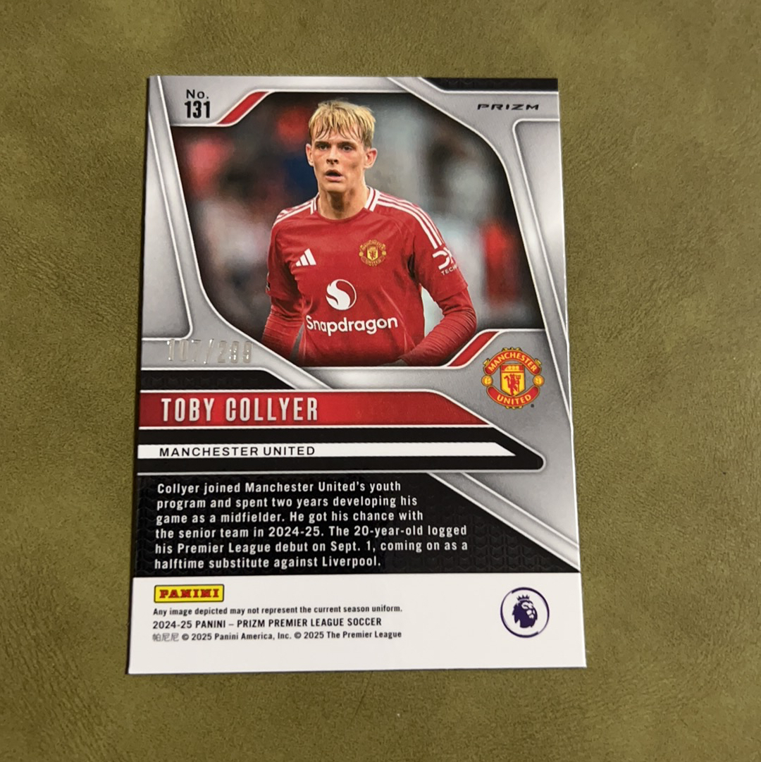 2024-25 Panini Prizm Toby collyer RC 科利尔 曼联 年轻有为 未来可期 107/299编 蓝折 收藏必备 凑套必备