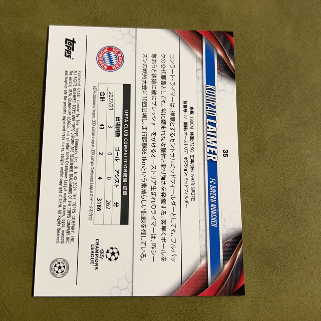 2023-24 Topps UEFA Champions League Konrad Laimer 莱默 德国 拜仁 拜仁慕尼黑 樱花 蓝折 23/75编 收藏必备 凑套必备