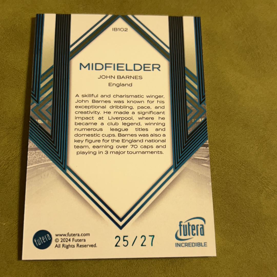 2024 Futera Futera Unique John Barnes 约翰 巴恩斯 英格兰 利物浦 纽卡斯尔联 传奇 名宿 25/27编 低编 收藏必备