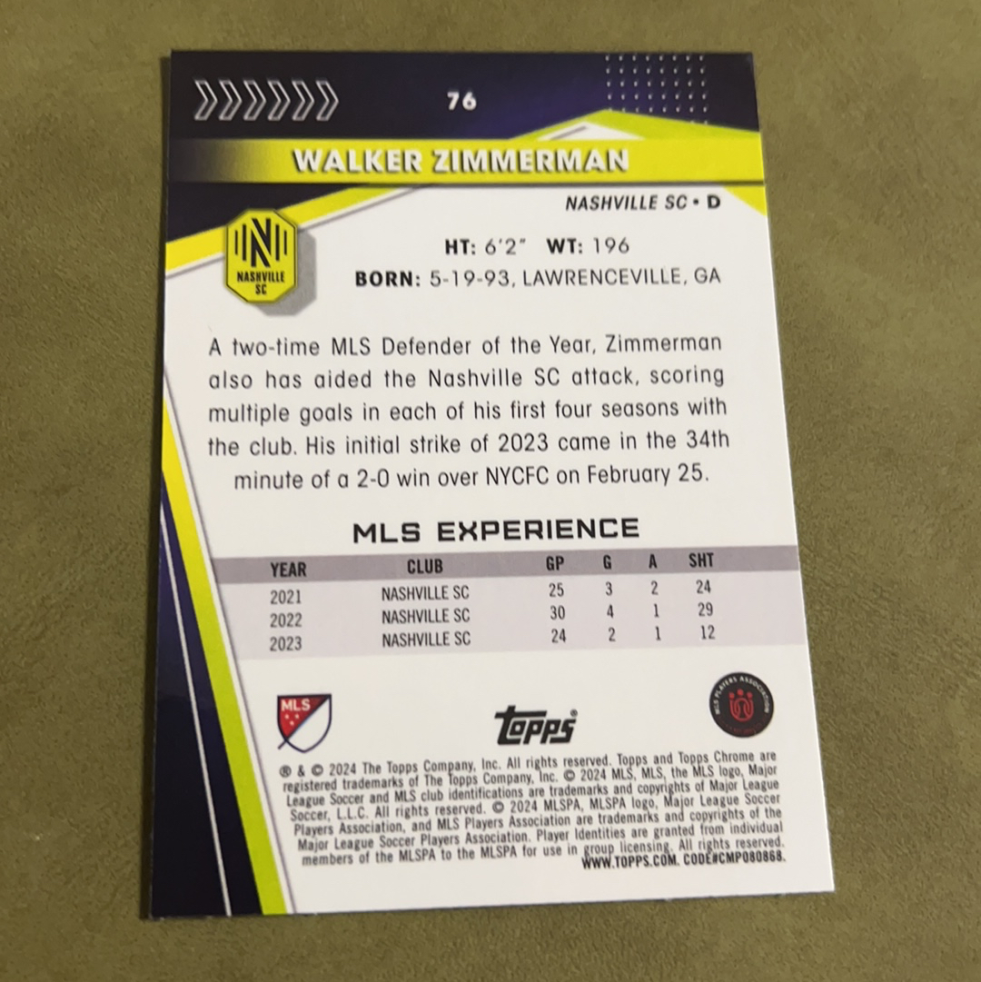 2024 Topps UEFA Champions League Walker zimmerman 沃克 美职联 纳什维尔 14/50编 金折 收藏必备 凑套必备