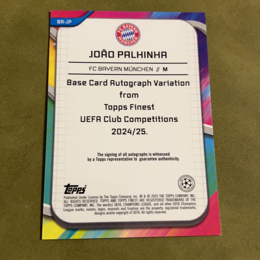 2024-25 Topps Finest Joao palhinha 若昂 帕利尼亚 葡萄牙 热刺 拜仁慕尼黑 签字 贴签 33/99编 收藏必备 凑套必备