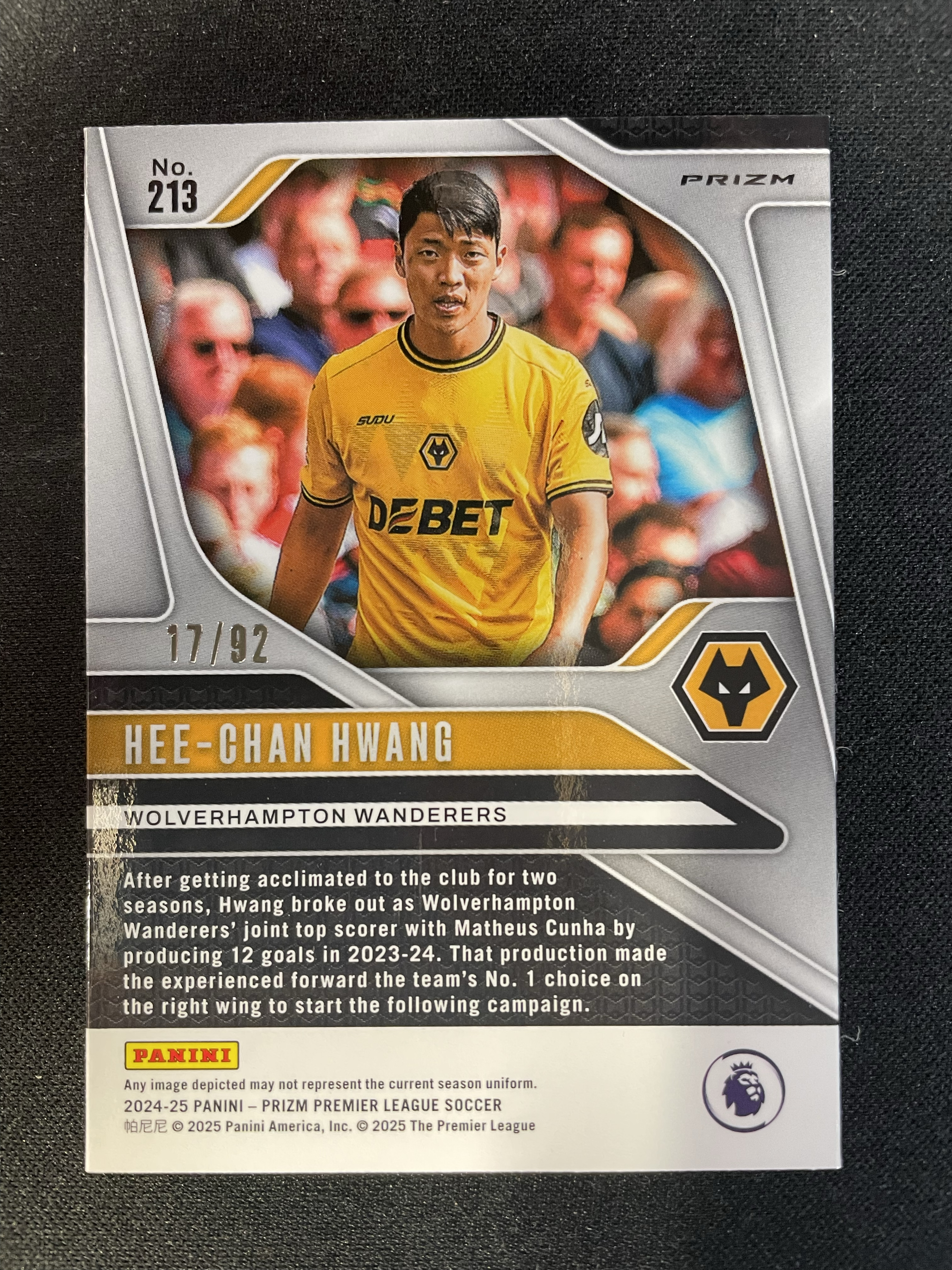 2024-25 Panini Prizm Hwang Hee Chan 92编 黄喜灿 狼队 韩国队 英超