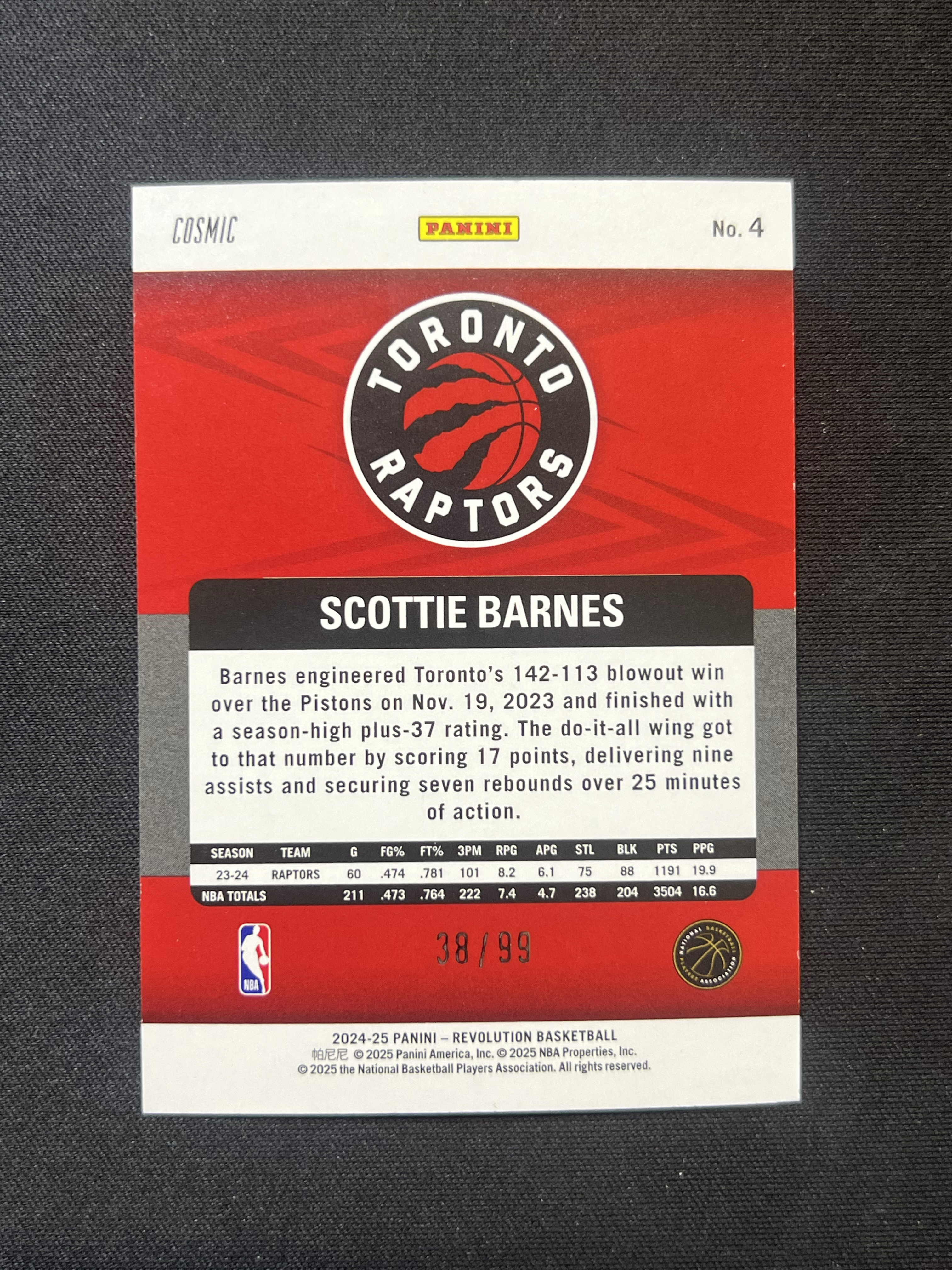 【卡卡星拍卖】2024-25 PANINI REVOLUTION SCOTTIE BARNES 斯科蒂 巴恩斯 99编 革命 猛龙 折射 篮球 卡品如图 武