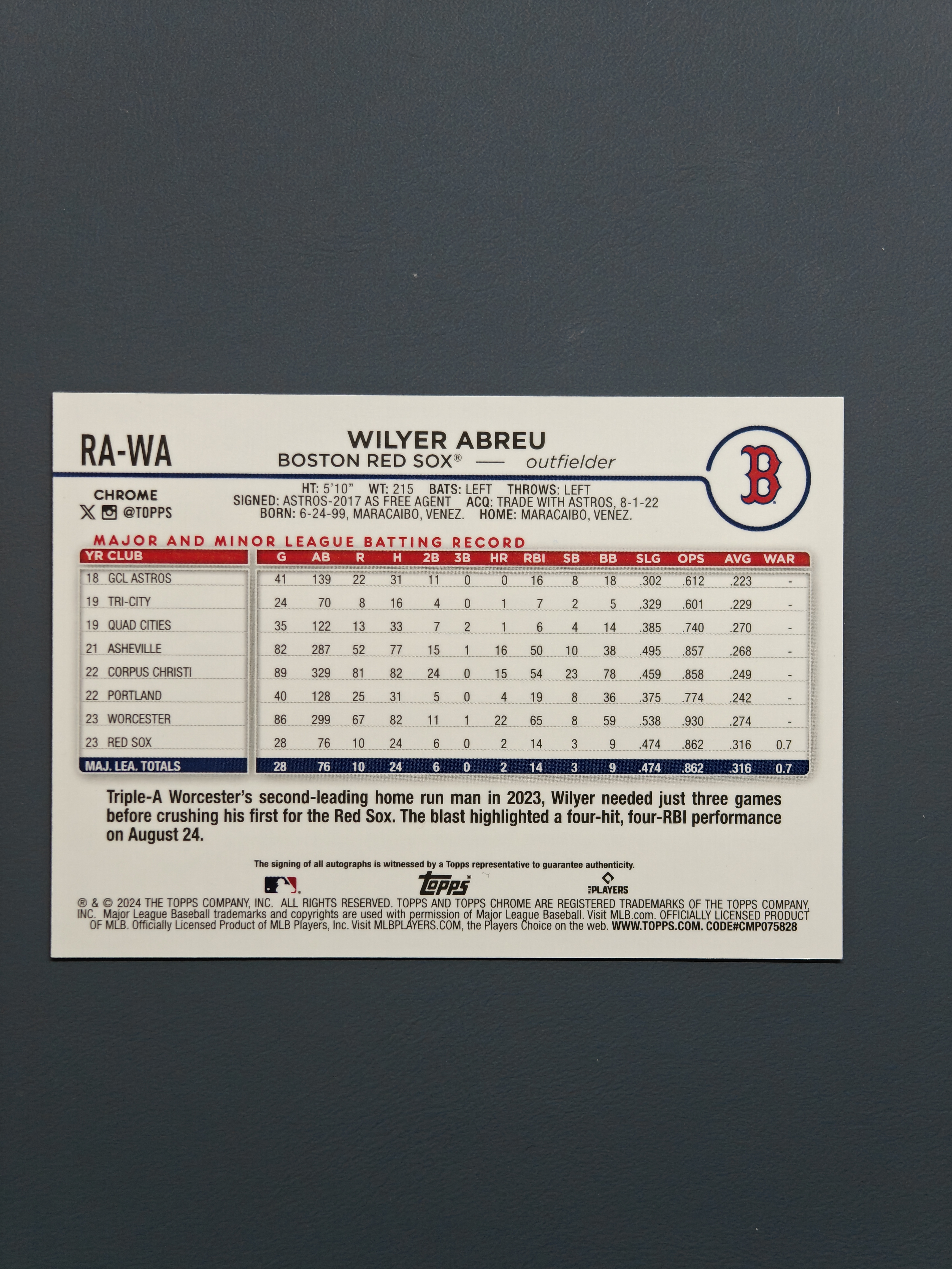 2024 Topps Chrome Wilyer Abreu RC 维耶尔 阿布雷乌 卡签 波士顿红袜顶级新秀