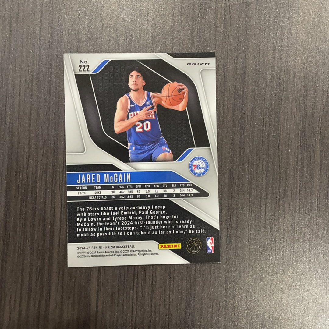 2024-25 Panini Prizm Jared McCain RC Prizm 贾里德 麦凯恩 魔仙哥 RC 新秀 银折 76人