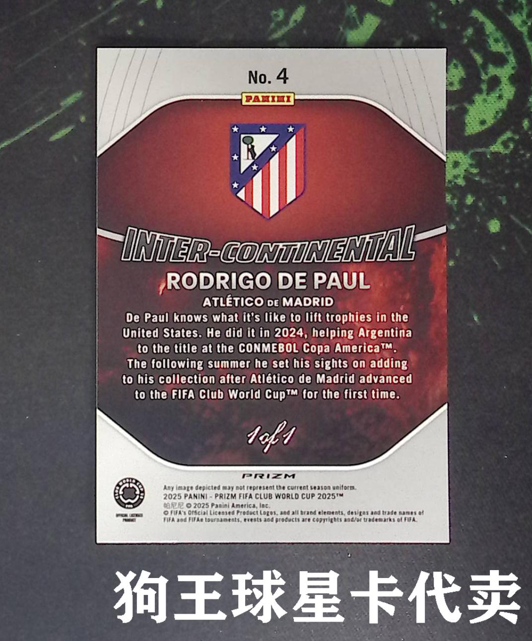 【狗王球星卡代卖规则】:1、关于卡片:所有卡片均为卡主委托本店代卖,所有图片均为实拍图。2、关于卡品:印刷线、胶印;厚卡白边、白角、毛边;薄卡印刷油口、小程度弯曲等均属出品厂商问题,非人为因素造成,可站内客服获取高清图及视频;默认打包lot卡片不保障卡品。出价即视为接受卡品。重大瑕疵会标注细节,原则上不退货(产生争议可走卡淘流程),如有卡品要求请购买评级卡!3、关于卡具:所有卡片均含卡膜,单价超过100元的卡片会配备卡具,如需购买卡具请站内留言4、关于支付:均为线上支付,请中标卡友于3日内支付,超期本店有权向卡淘发起投诉。5、关于邮寄:所有卡片在付款后3个工作日内均按默认地址发出(如需变更地址,请自行在付款界面变更收货地址),本店默认使用顺丰快递,邮费:湖南省内12;其他省份18,偏远地区一律到付(如需保价请联系客服)(默认首重2KG,LOT超重另计)。6、本店不提供交换板代刮业务,请见谅!