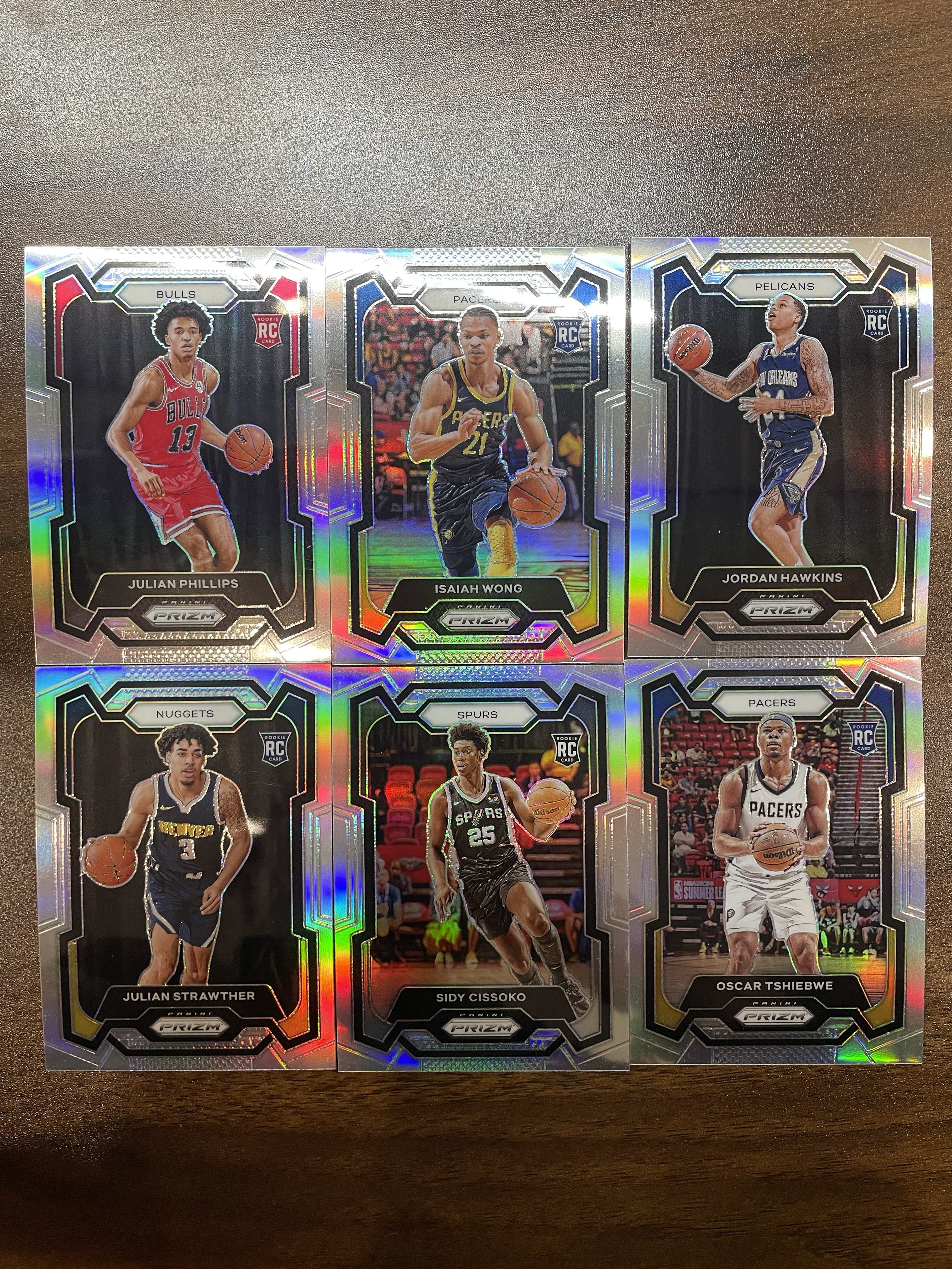 2023-24 Panini Prizm Julian Phillips RC Prizm 6张打包 RC 新秀 朱利安 飞利浦斯 以赛亚 王 乔丹 霍金斯 朱利安 斯特劳瑟等 银折 Lot