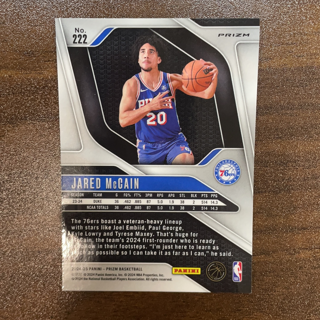 2024-25 Panini Prizm Jared McCain RC Prizm 贾里德 麦凯恩 魔仙哥 RC 新秀 粉碎冰折 76人