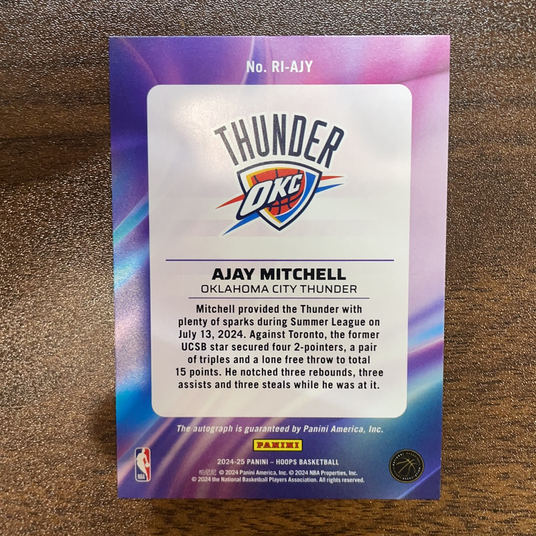 2024-25 Panini NBA Hoops Ajay Mitchell RC Hoops 阿杰 米切尔 RC 新秀 签字 雷霆