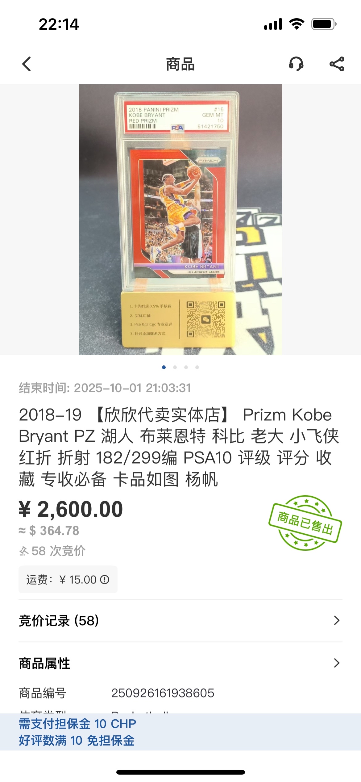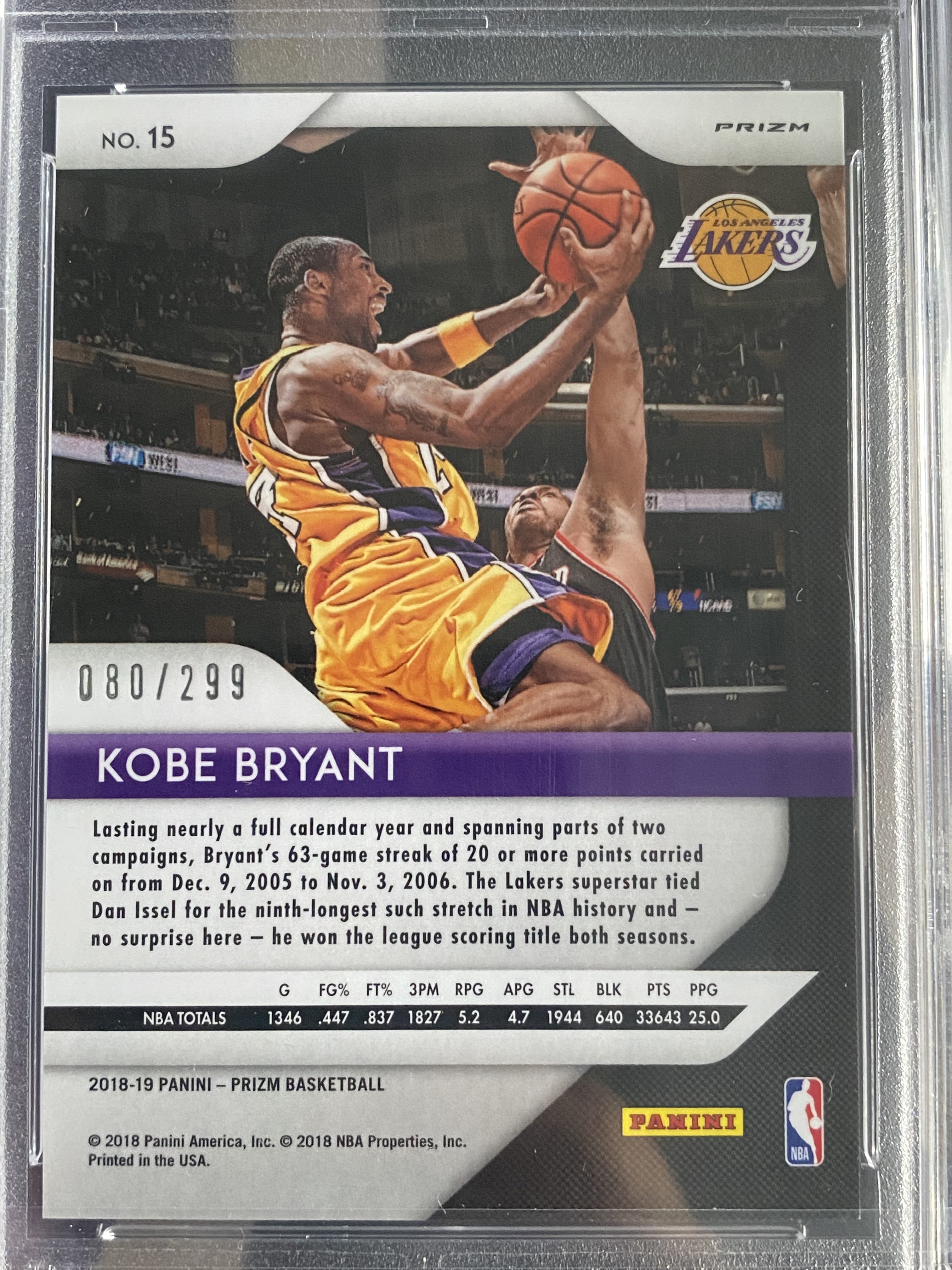 2018-19 Panini Prizm Kobe Bryant 科比 红折 最漂亮的一年 PSA10分 满分评级 080/299 第三张图有最近刚刚截标的一张价格