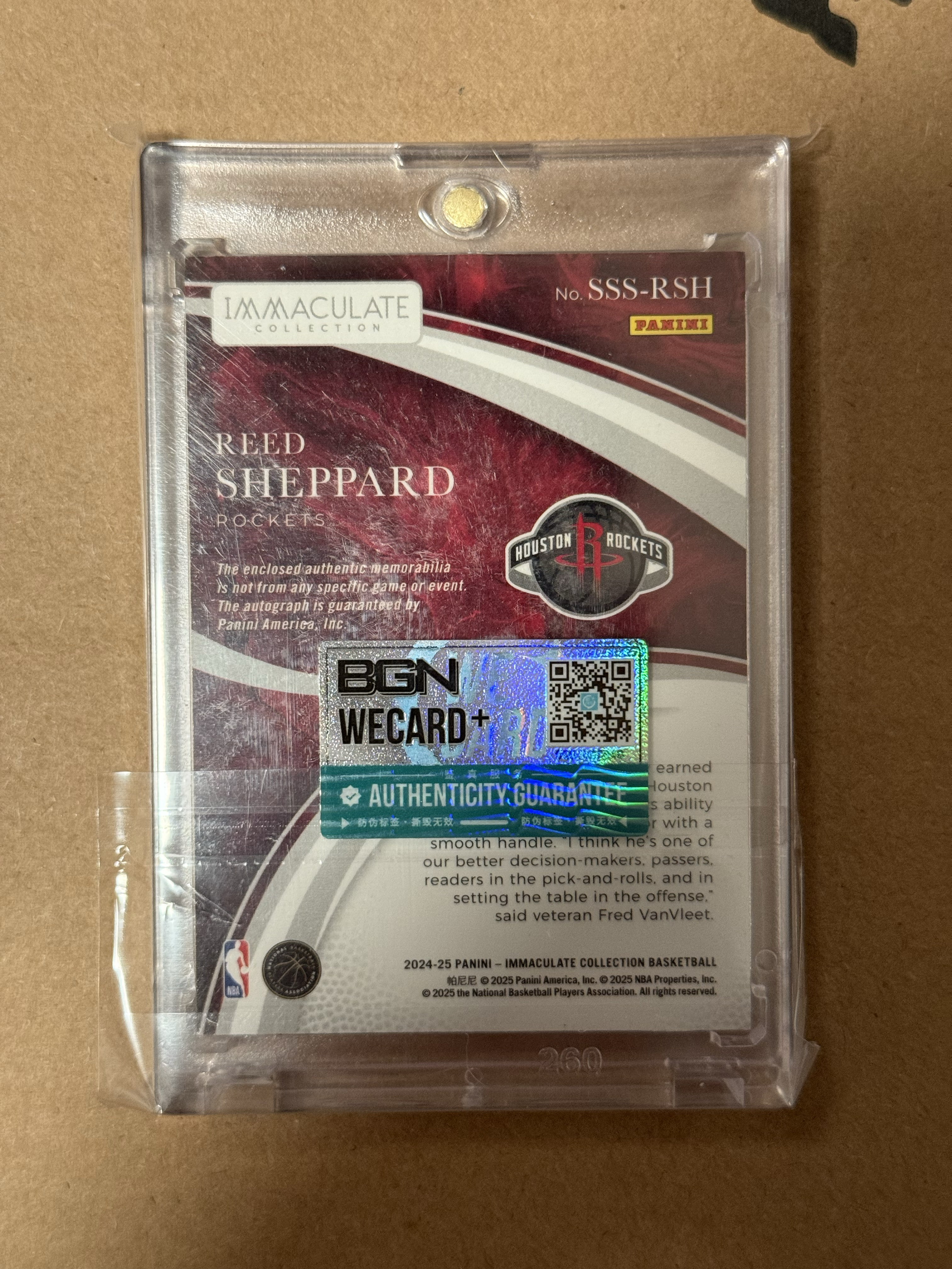2024-25 Panini Immaculate Collection Reed Sheppard RC 火箭 新秀 里德 谢泼德 RPA 球鞋 切片 物料 卡签 签字 签名 红折 50编 品相如图