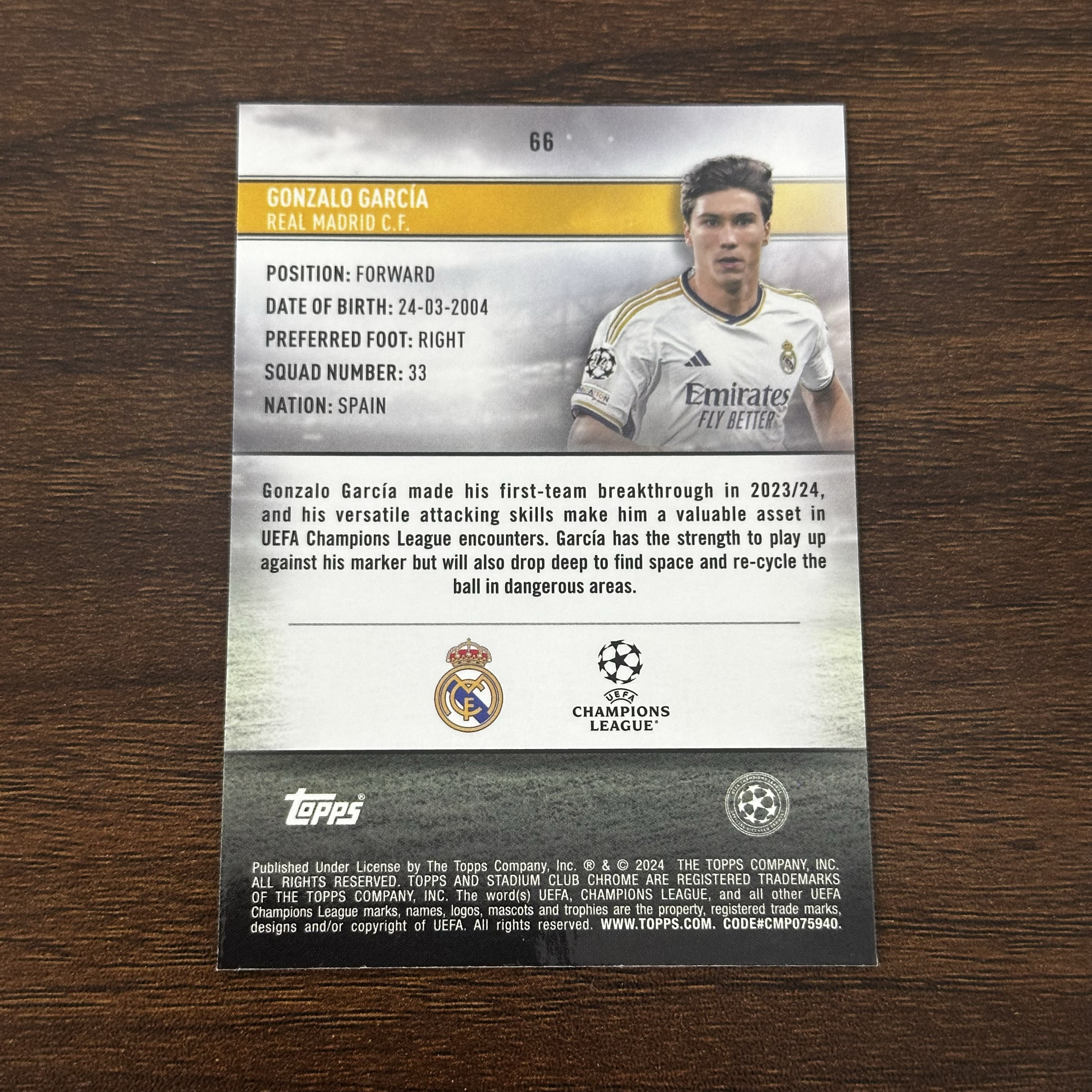 2024 Topps UEFA Champions League gonzalo garcia RC 欧冠 欧战 竞技场 新秀RC 银折射限量卡 西班牙 皇马超新星 加西亚 稀有 卡品如图