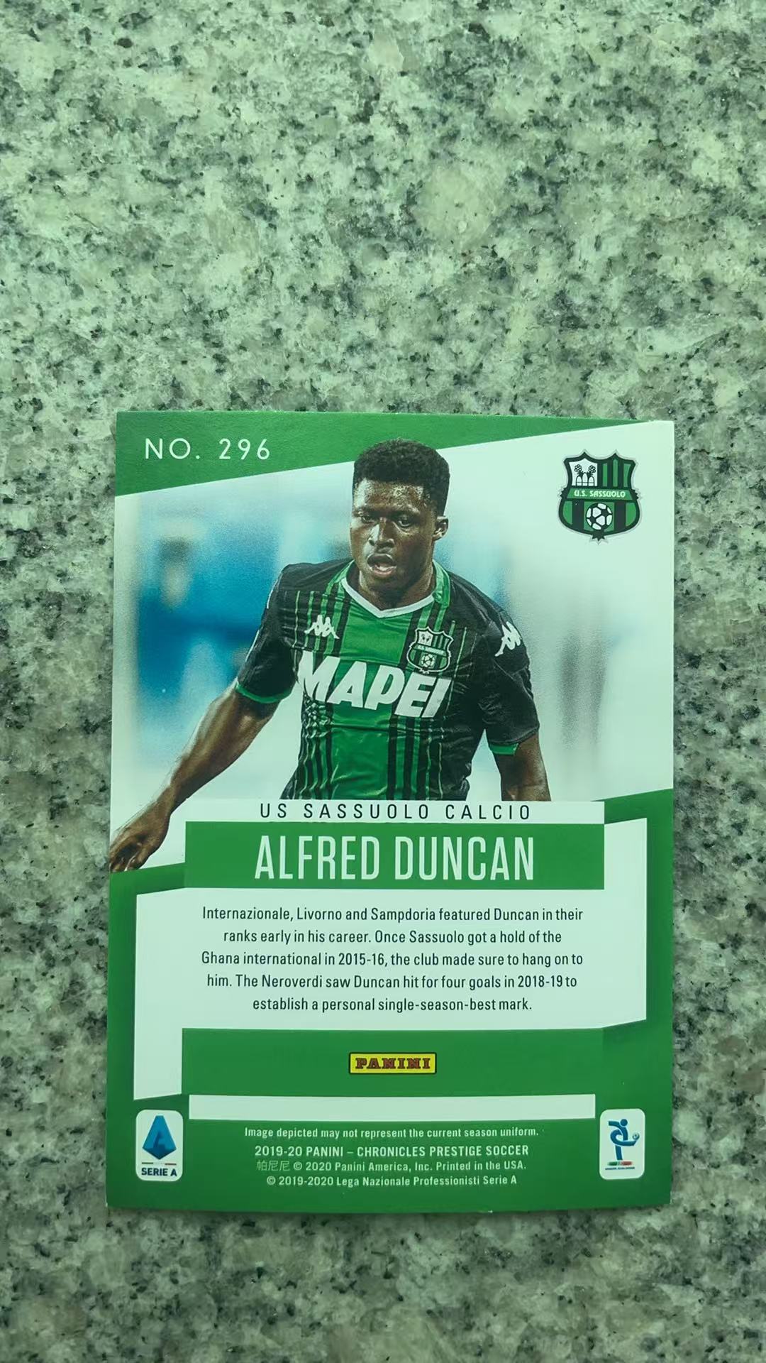 2019-20 Panini Chronicles Alfred Duncan RC 19/20赛季 帕尼尼 编年史 Prestige 意甲 萨索洛 阿尔弗雷德 邓肯 新秀 base
