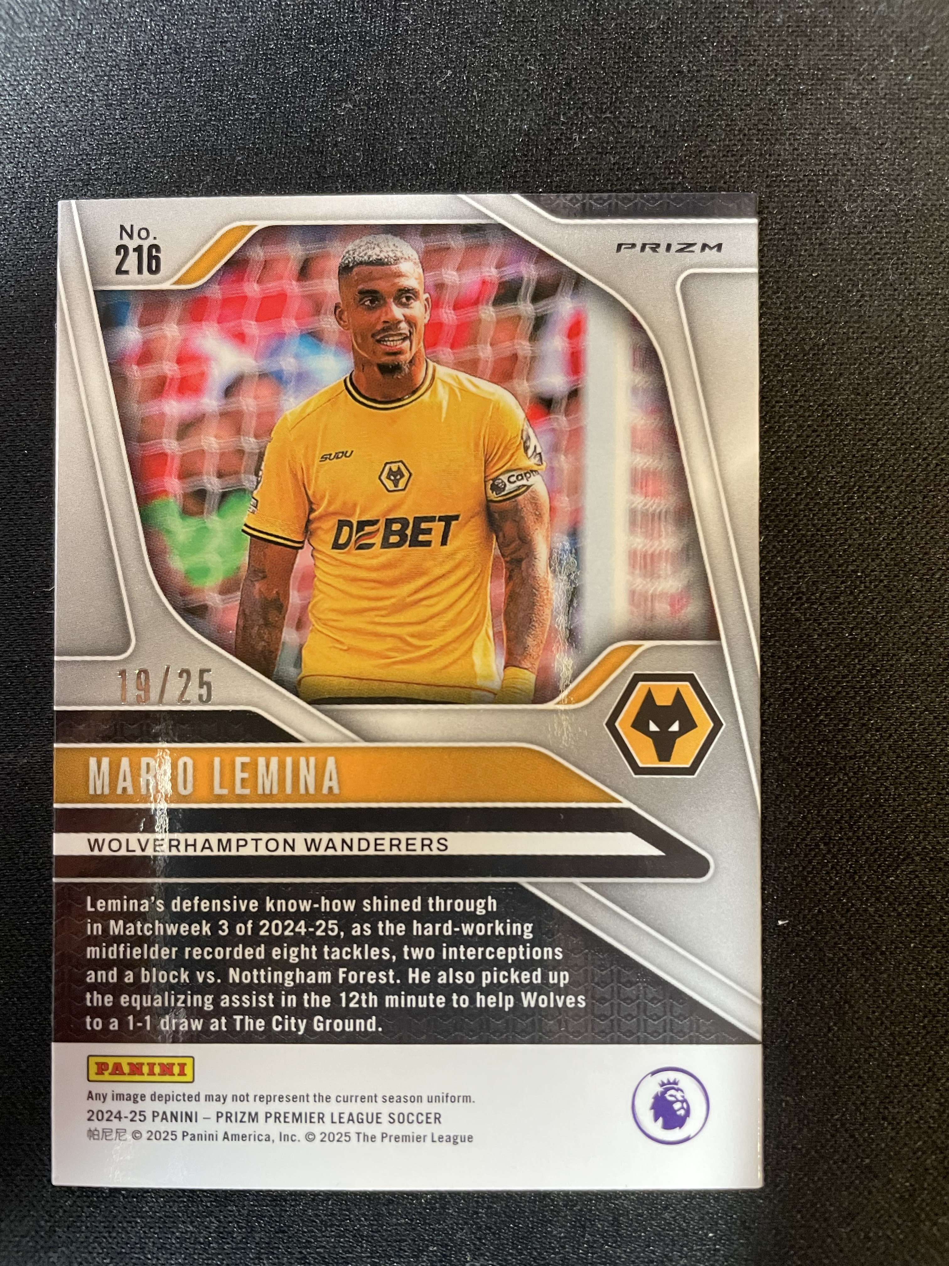 2024-25 Panini Prizm Mario Lemina 勒米纳 泡泡折 狼队 英超 紫mojo折 25编