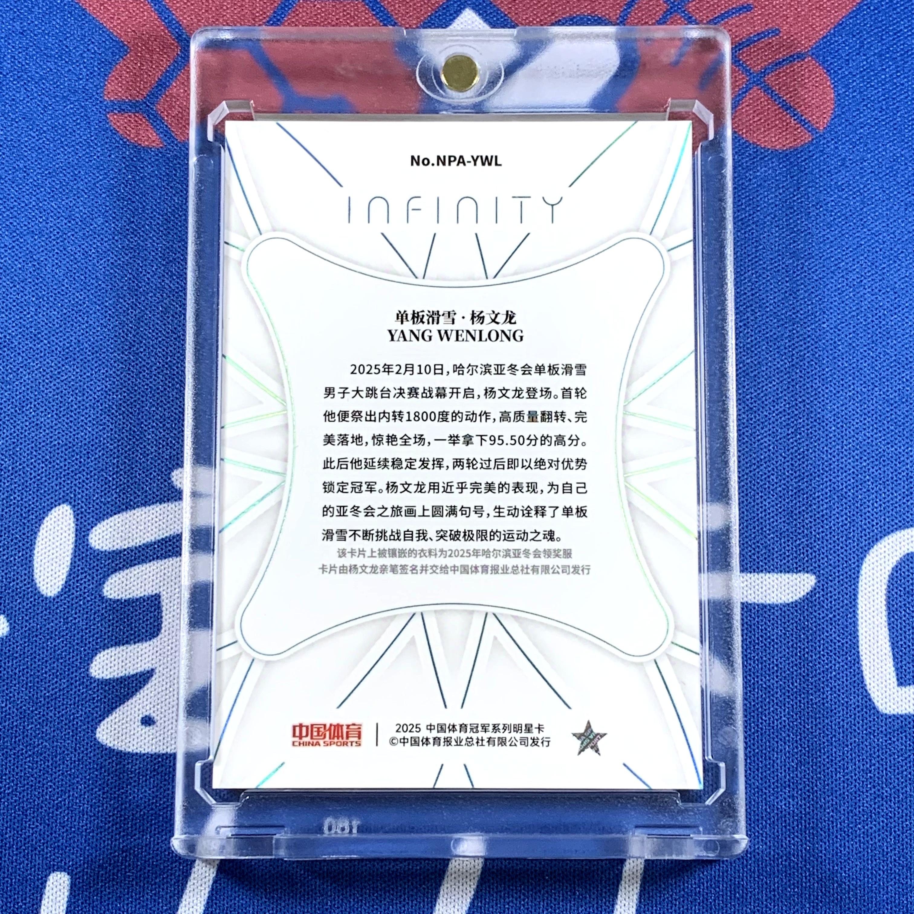 【海宝】2025 奇卡 QICA 中国体育 无限 Infinity 单板滑雪 新秀FS 杨文龙 1/1编 1of1 一编一 湖水蓝闪 奥运五环logo大窗PA卡签 轻印 2025亚冬会领奖服【CN】