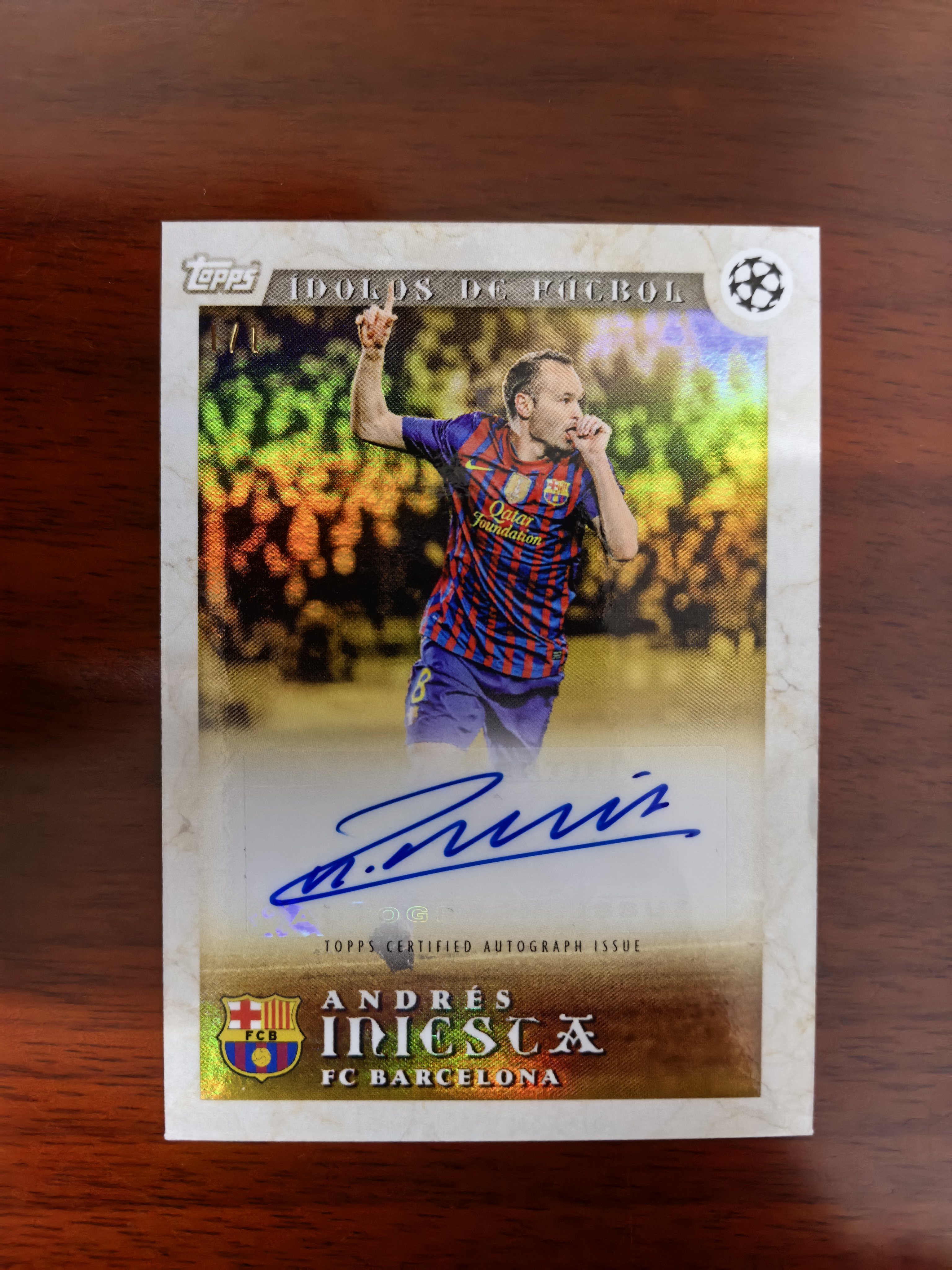 2023-24 Topps 邦马蒂白金盒 Andres Iniesta 伊涅斯塔 1/1编 爆金 签字 ofo 小白 巴萨 西班牙 女足盒最难出的签字 世界杯冠军 梅西 亚马尔 瑕疵见图【枪王拍卖】