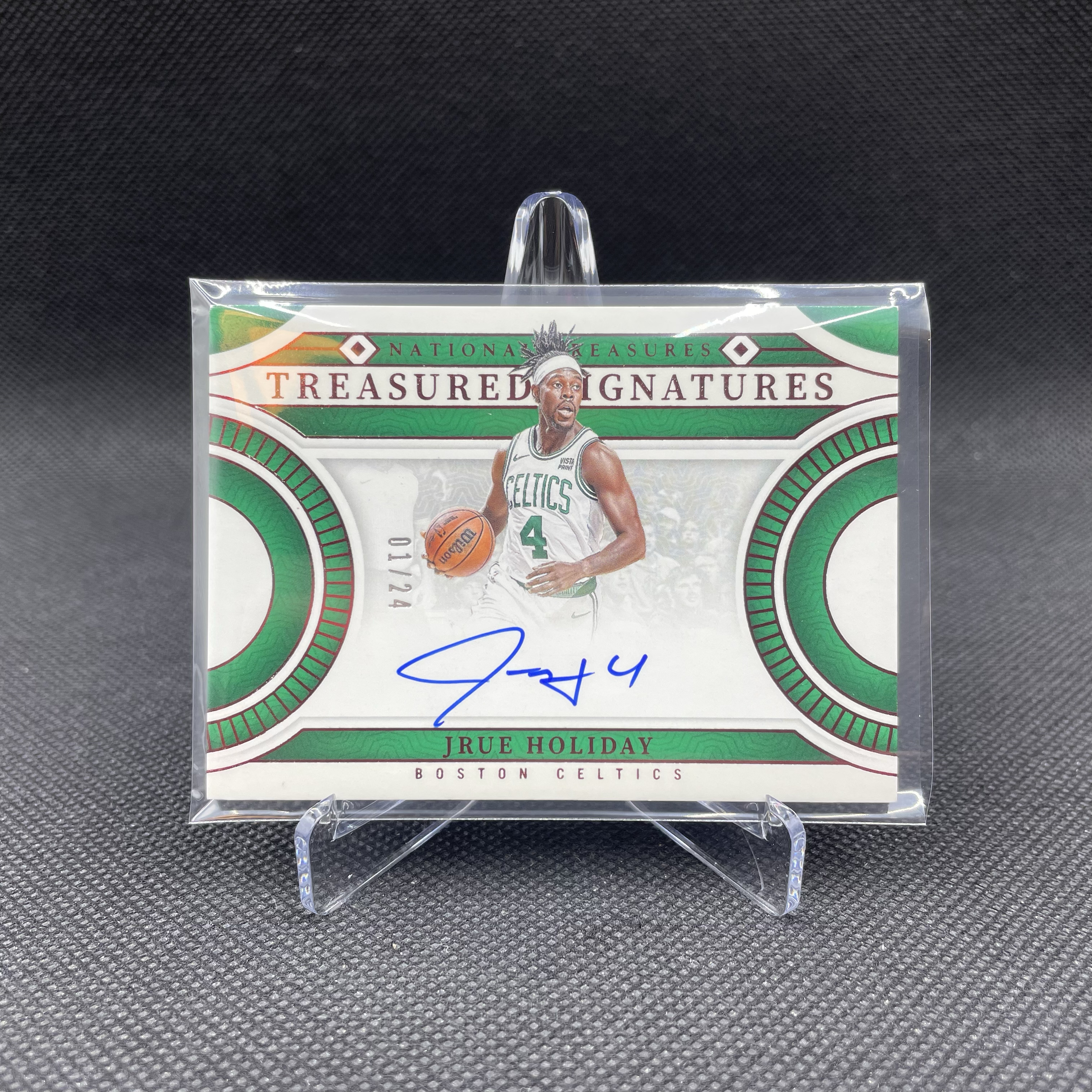 2023-24 Panini National Treasures Jrue Holiday 国宝 凯尔特人 朱 霍勒迪 01/24编 首编 签字 卡签 铜平行 塔图姆队友 冠军拼图 墨迹湛蓝 阿岳