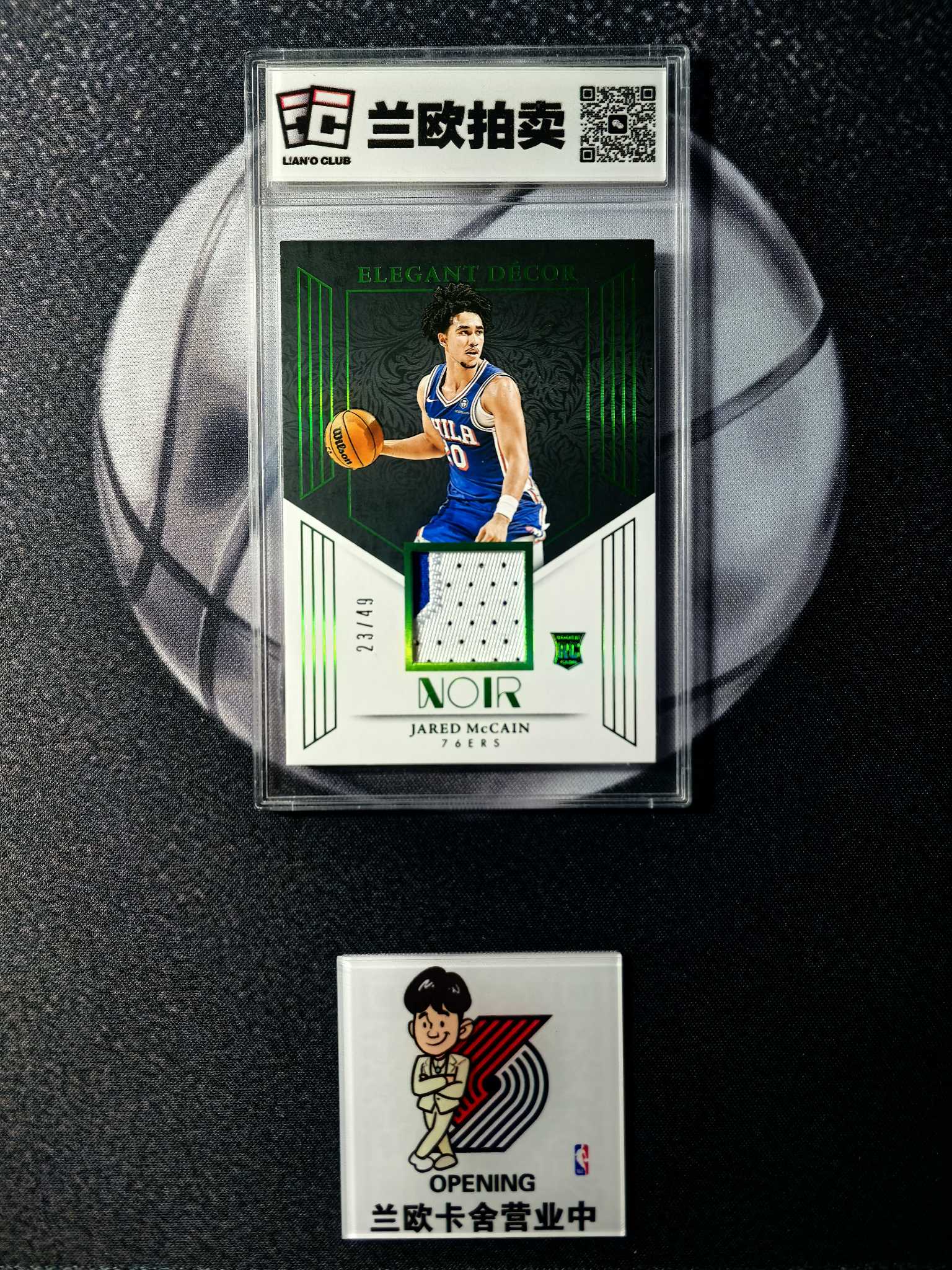 2024-25 Panini Noir Jared McCain RC 【兰欧拍卖】贾里德 麦凯恩 魔仙哥 76人新秀 诺尔 23/49编 绿平行 小窗球衣物料双色Patch 凑套必备【刘老板6期-7】