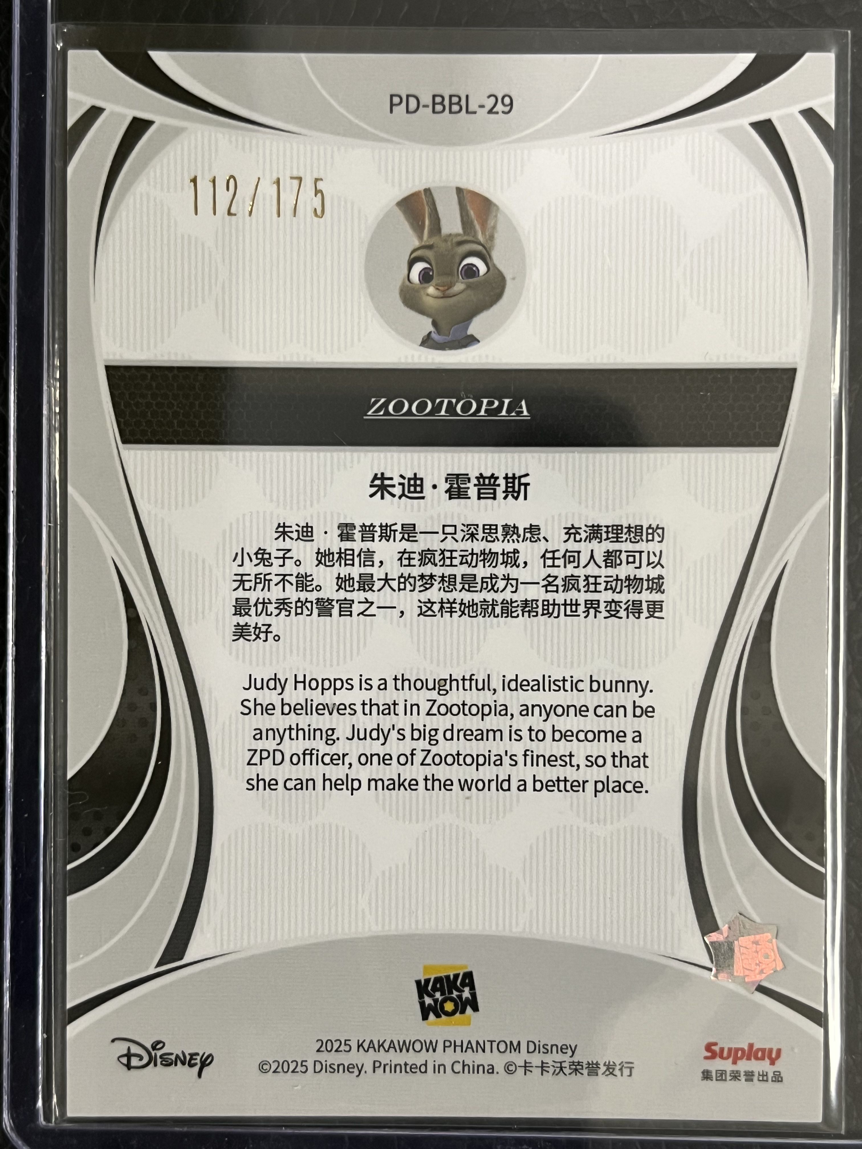 卡卡沃 Kakawow Disney 2025PHANTOM 迪士尼 基础卡-蓝 陆Y(2C) 112/175编 朱迪·霍普斯 Judy Hopps